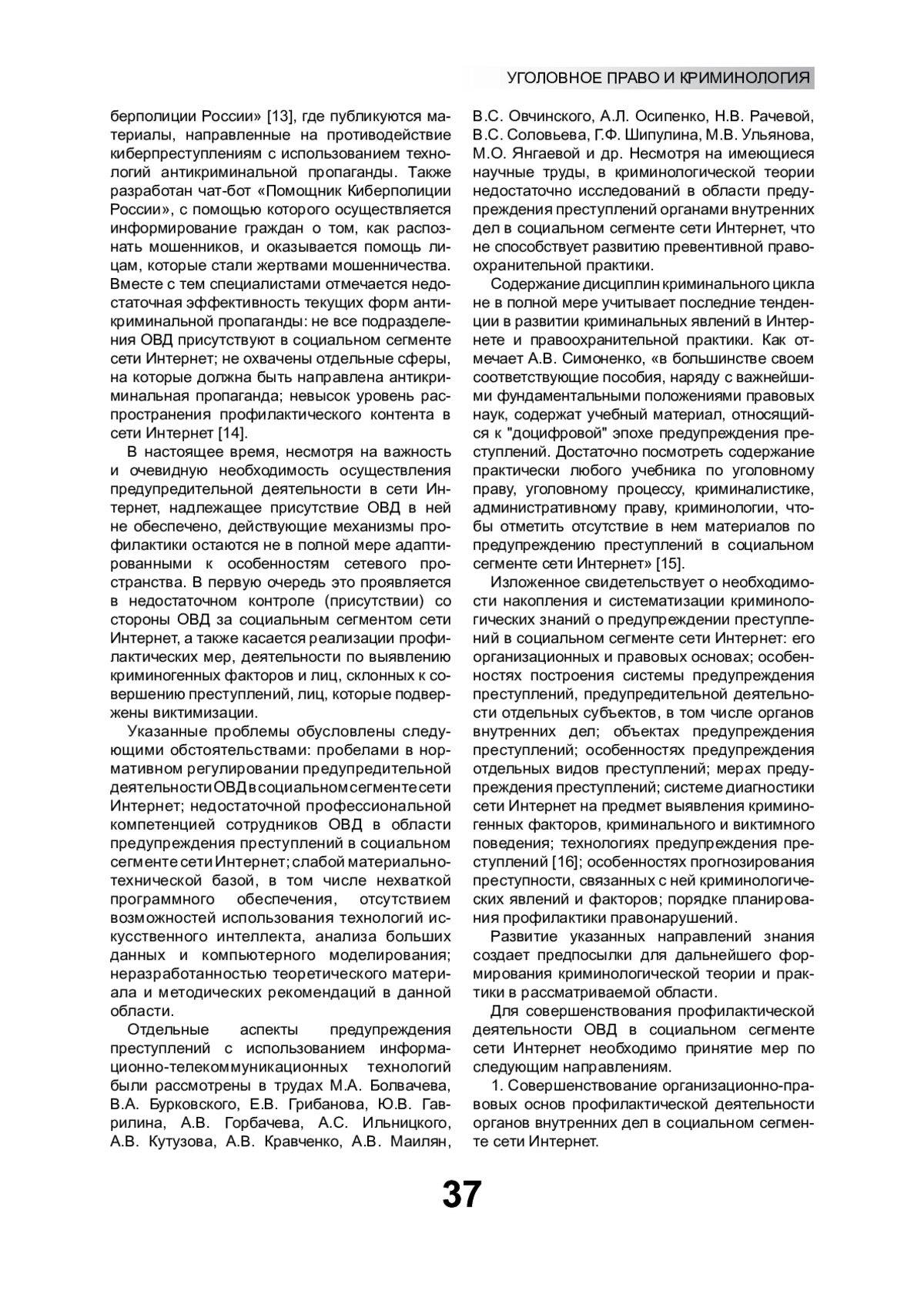 16. Грибанов Е.В. Технологии предупреждения преступлений: проблемы формирования и развития // Государство и право. 2019. № 10. С. 94-103. EDN: RCJHZB