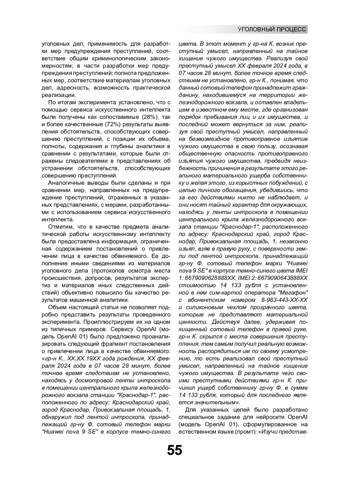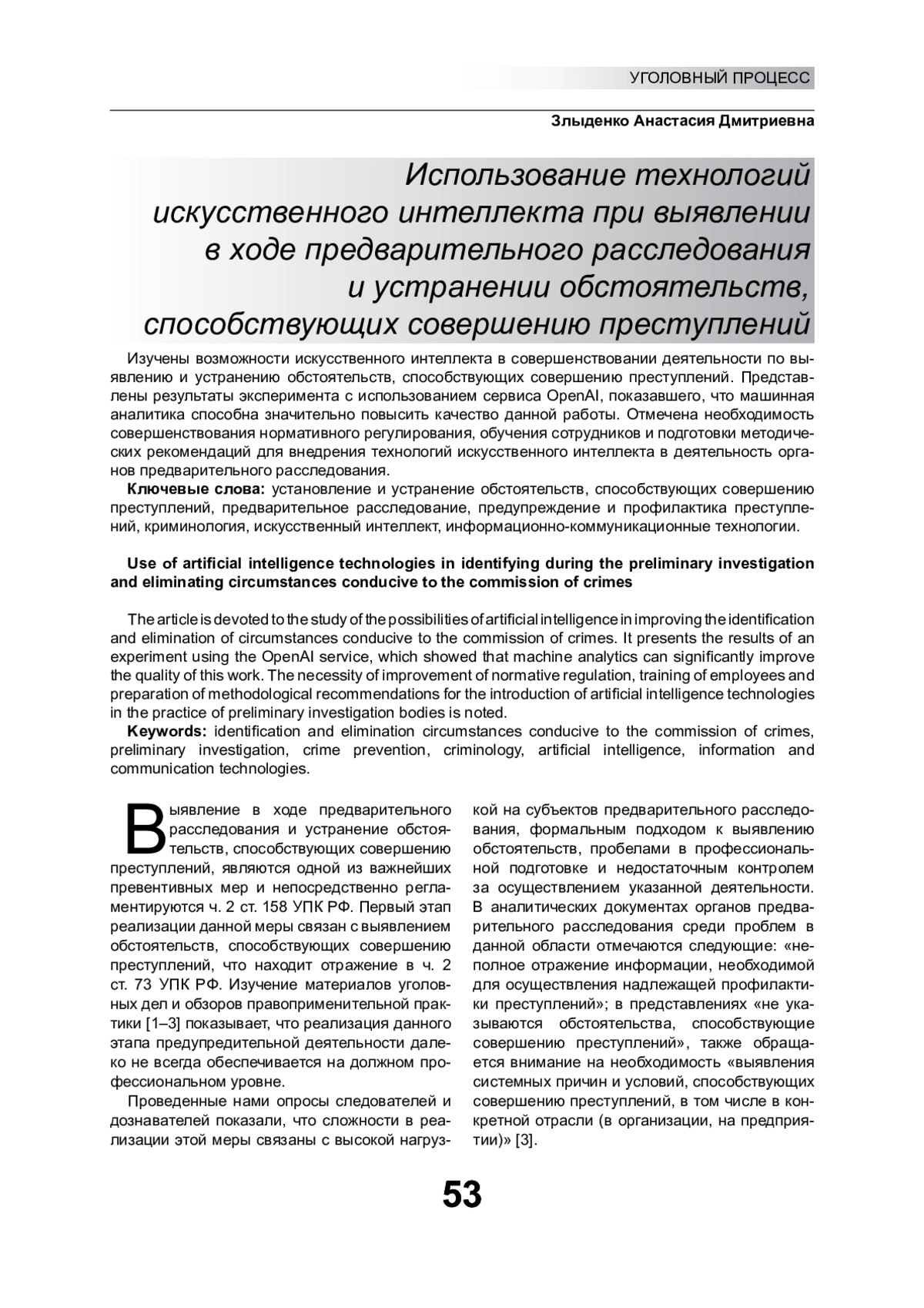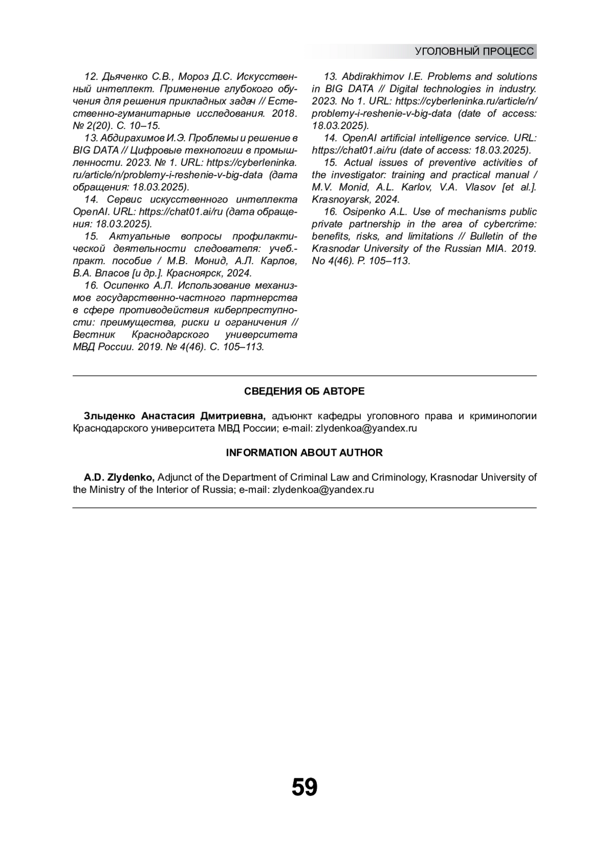 4. Осипенко А.Л. Применение технологий искусственного интеллекта в юридической науке // Общество и право. 2024. № 4(90). С. 6-14. EDN: DBBAZV