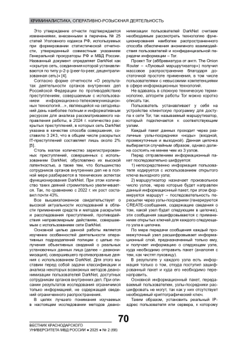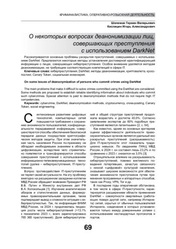С интенсивным развитием цифровых технологий, компьютерных сетей повышаются требования к сохранению анонимности пользователей, конфиденциальности передаваемой информации, совершенствуются способы обеспечения безопасной передачи данных посредством криптографических методов защиты. При этом значительная часть населения России по-прежнему не обладает необходимыми знаниями в области цифровизации, вследствие чего стремительно появляются и трансформируются способы совершения преступлений с использованием информационно-телекоммуникационных технологий (далее – киберпреступления, IT-преступления)