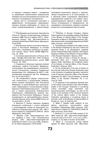 1. Стенограмма выступления Президента России В. Путина на расширенном заседании коллегии МВД России 5 марта 2025 г. [Электронный ресурс]. URL: http://www.kremlin.ru/events/president/news/76408 (дата обращения: 18.04.2025).
