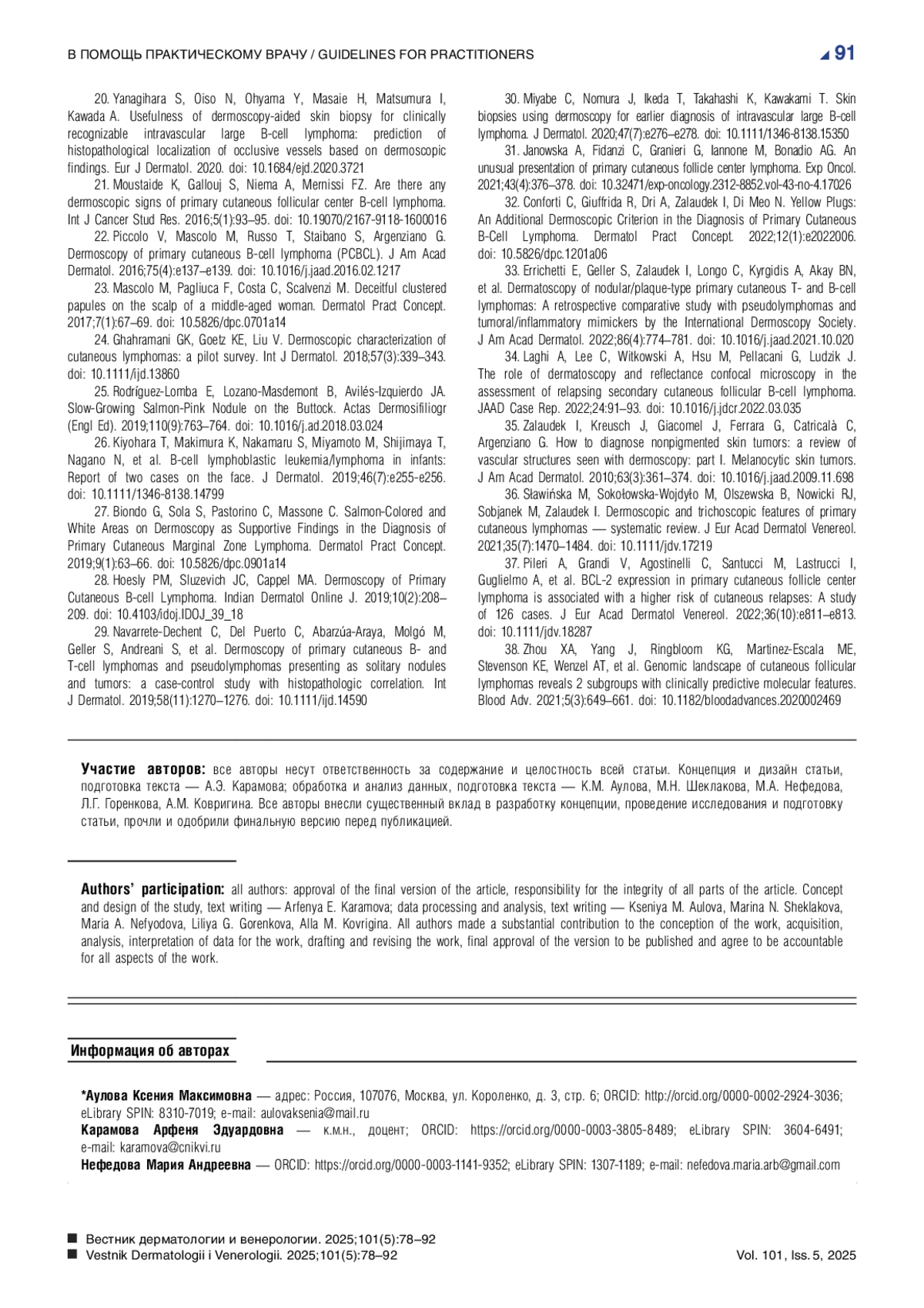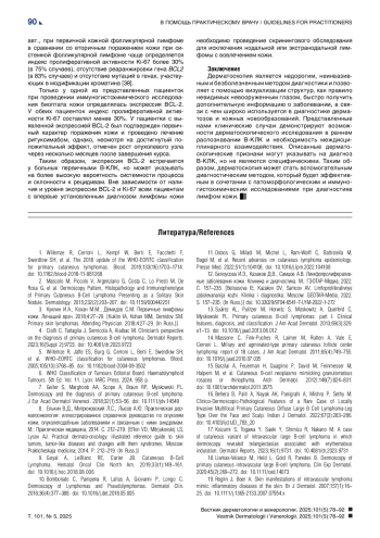 3. Куклин И.А., Кохан М.М., Демидов С.М. Первичные лимфомы кожи. Лечащий врач. 2018;4:27-29.