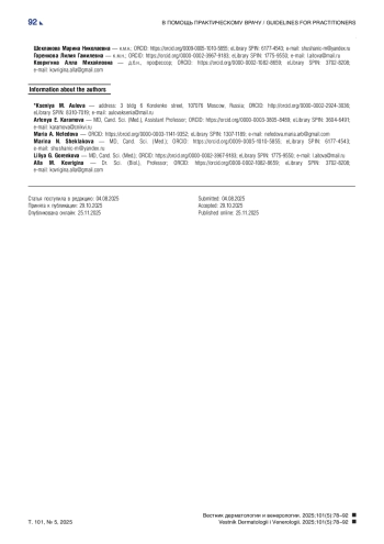 Созданный в 1990-е годы и вошедший в клиническую практику в первой декаде XXI в. препарат такролимуса в форме мази (известен во всех странах под торговым названием Протопик®) стал первым и наиболее активным представителем класса топических ингибиторов кальциневрина (ТИК) и первой за полвека альтернативой топическим глюкокортикостероидам (ТГКС) по своей противовоспалительной активности. Уникальный механизм действия (селективный Т-клеточный иммуносупрессант) и отсутствие характерных для ТГКС побочных эффектов сделали его ценным инструментом в терапевтическом арсенале дерматологов. На сегодняшний день мазь такролимуса входит во все возможные международные и национальные клинические рекомендации по лечению атопического дерматита, являющегося единственным зарегистрированным показанием к применению, имея наивысший уровень доказательности (1А). К сожалению, по ряду причин, преимущественно коммерческого характера, компания-производитель не стала инвестировать в программу клинических испытаний, которые позволили бы зарегистрировать мазь такролимуса по другим показаниям; в то же время очевидно, что Т-клеточный иммунный ответ играет ключевую роль в патогенезе широкого спектра дерматозов и фармакодинамика такролимуса полностью отвечает задаче их лечения. В связи с этим за два минувших десятилетия независимыми исследователями были проведены сотни клинических исследований, включая высокодоказательные двойные слепые рандомизированные, обеспечившие доказательную базу, которая позволила включить мазь такролимуса в клинические рекомендации по широкому спектру незарегистрированных показаний. Цель данного обзора — систематизация упомянутого мирового опыта для повышения осведомленности о нем клиницистов и более рационального практического использования ценного клинического инструмента, коим является мазь такролимуса. В первой части данного обзора (вторая будет опубликована позднее) приведены общие сведения о мази такролимуса, включая историю разработки, фармакологические характеристики и особенности клинического применения, а также затронута проблема off-label применения препаратов. Будет проанализирована доказательная база по применению мази такролимуса для лечения витилиго и фиброзирующих заболеваний соединительной ткани.