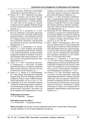22. Лобан Н. В. Особенности управления компаниями в условиях внешних ограничений // Инновации и инвестиции. - 2023. - № 3. EDN: WHNQEY