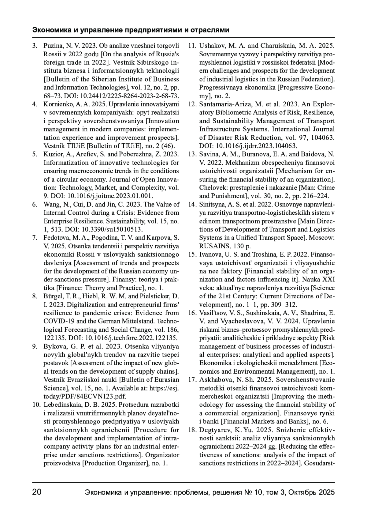 11. Ушаков М. А., Чаруйская М. А. Современные вызовы и перспективы развития промышленной логистики в российской федерации // Прогрессивная экономика. - 2025. - № 2. EDN: EWLIDE