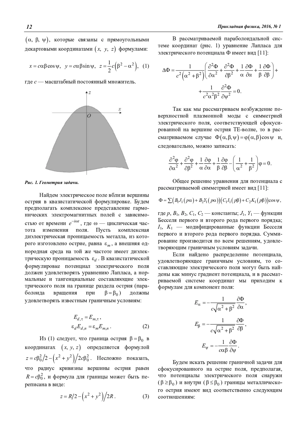 6. A. Petrin, Nanofocusing of Surface Plasmons at the Apex of Metallic Tips and at the Sharp Metallic Wedges. Importance of Electric Field Singularity, Wave Propagation. (ISBN: 978-953-307-275-3. InTech. 2011).