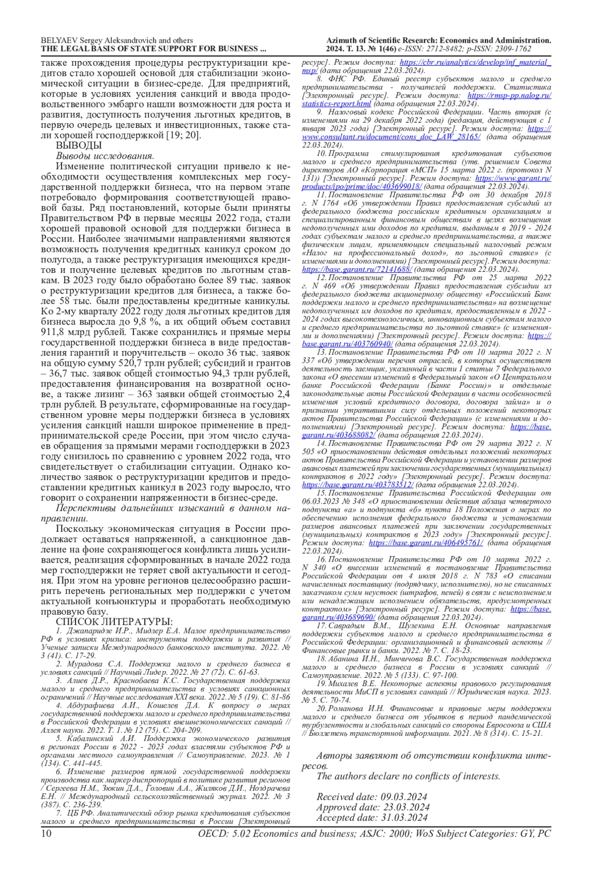 3. Алиев Д.Р., Краснобаева К.С. Государственная поддержка малого и среднего предпринимательства в условиях санкционных ограничений // Научные исследования XXI века. 2022. № 5 (19). С. 81-86. EDN: ETZLWX