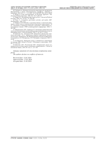 Выводы: финансовое поведение населения-это сложный и многогранный процесс, зависящий от множества факторов. Исследование девиантного финансового поведения находится в стадии становления. Эффект от проектов по повышению финансовой грамотности, в том числе в вопросе солидарности интересов населения с интересами государства и общества в реализации государственных стратегий по повышению качества жизни населения, развития финансовой системы и экономики страны в целом, еще только предстоит оценить.