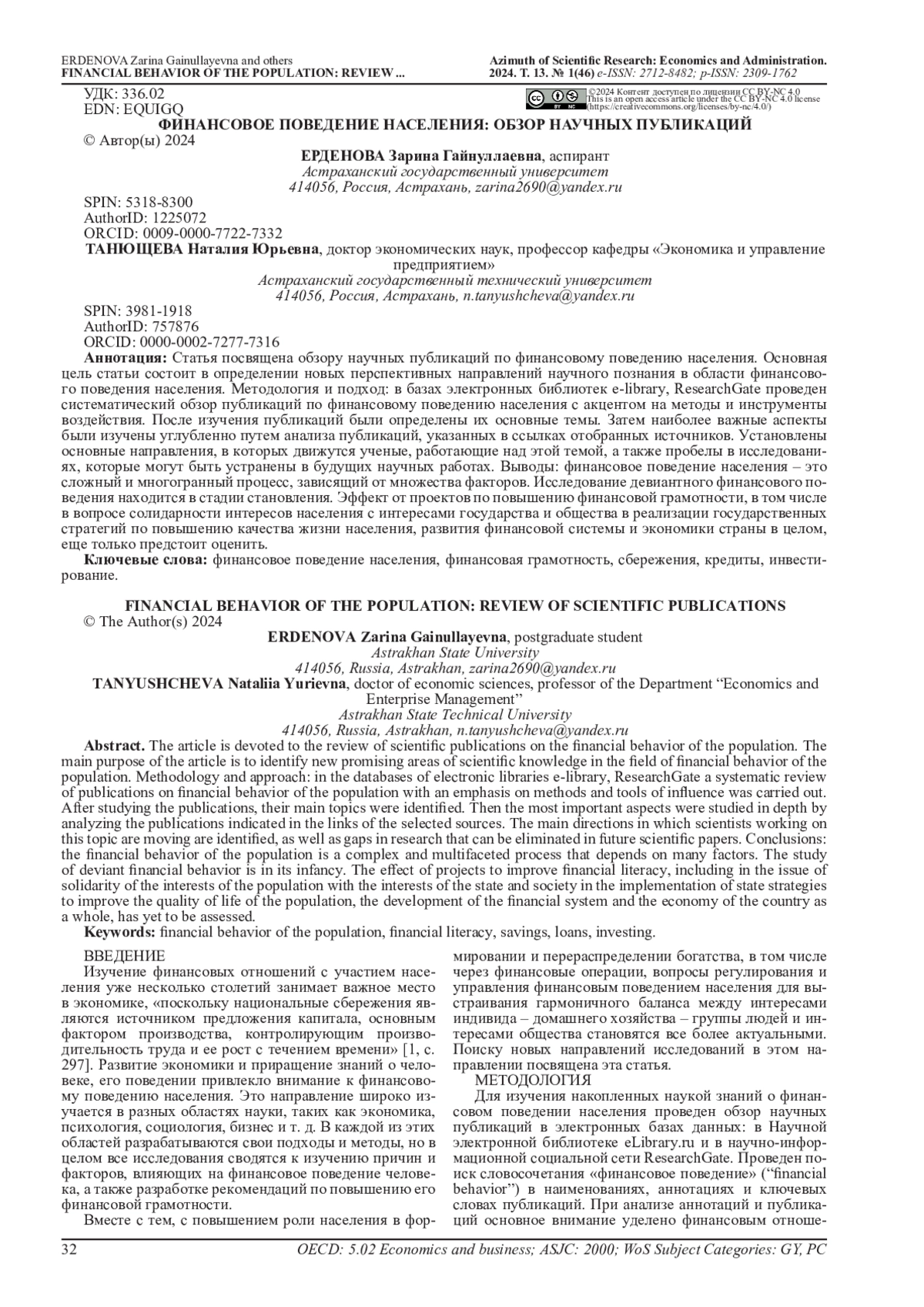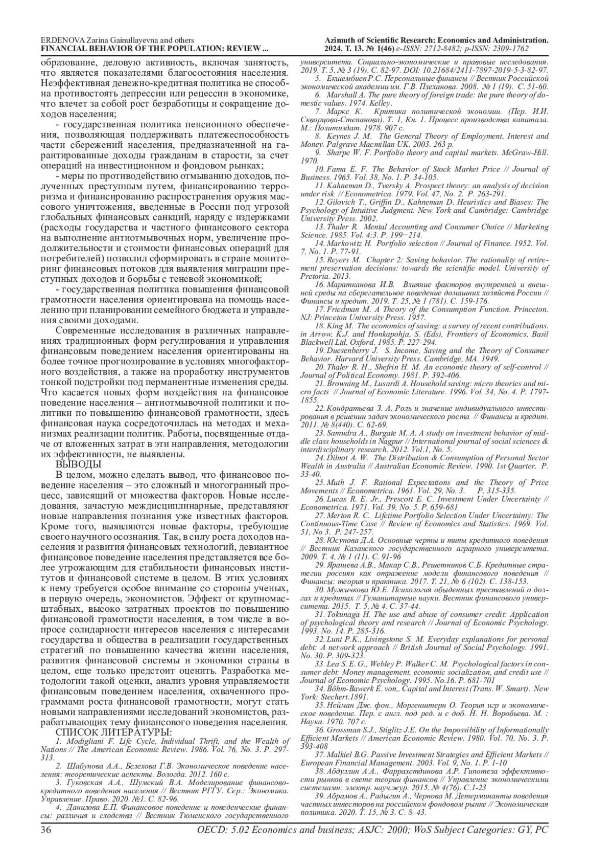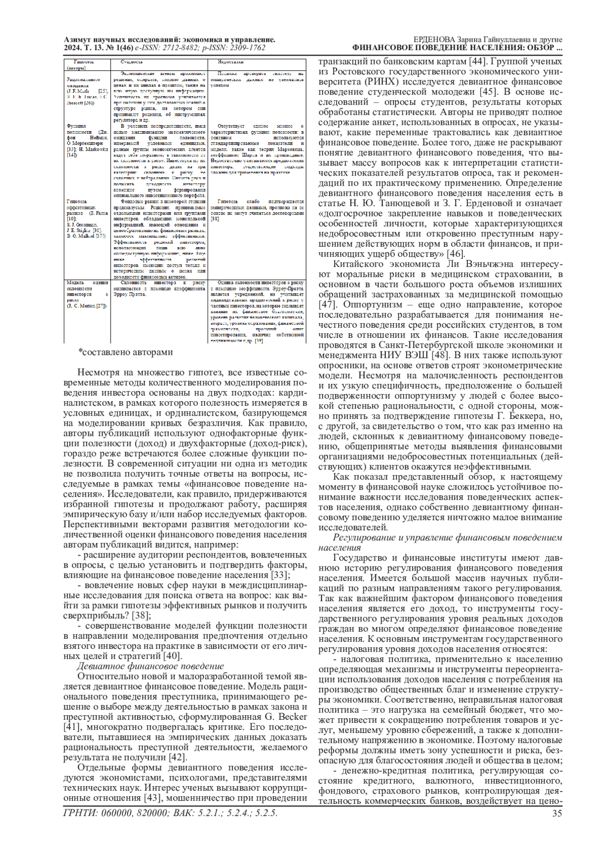 46. Ерденова З.Г., Танющева Н.Ю. Девиантное финансовое поведение населения // В сб.: Актуальные вопросы современной экономической науки. Материалы ХII Международной научной конференции. Составители: Е.О. Вострикова, Л.П. Гвоздарёва. Астрахань. 2022. С. 43-46. EDN: PZRWNX