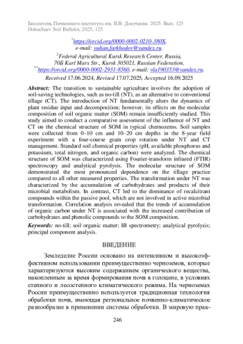 2. Белобров В.П., Юдин С.А., Айдиев А.Я., Ермолаев Н.Р., Лебедева М.П., Абросимов К.Н., Борисочкина Т.И., Воронин А.Я., Плотникова О.О. Чернозем типичный, прямой посев, Курская область. опыт, ротация 1.1 / под ред. А.Л. Иванова. М.: ГЕОС, 2021. 123 с.