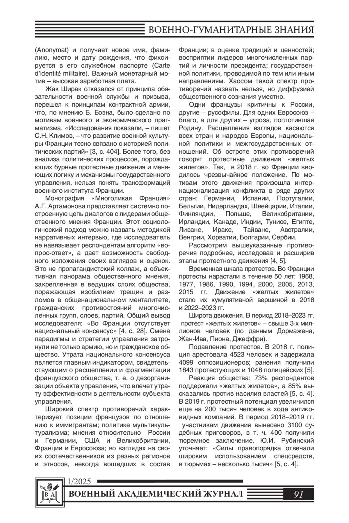 21. Мясников А.И., Жданович Д.А. Влияние протестов желтых жилетов на итоги выборов во Франции 2022 года // Мир после COVID-19: теории и практики антикризисного реагирования в новой реальности. - 2022. - С. 8-11. EDN: GHHQJW