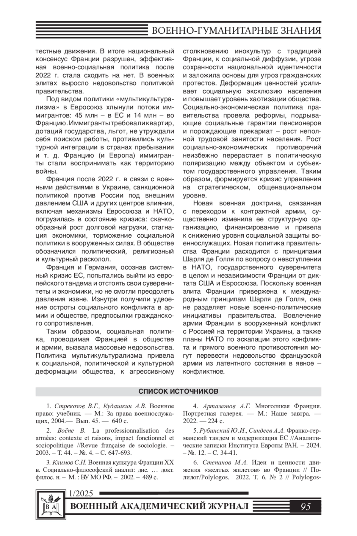 10. Копалиани В.З. Новые социальные движения во Франции как исторический феномен и социологическая концепция // Общество: социология, психология, педагогика. - 2024. - №. 5. - С. 27-33. EDN: XAYCHA