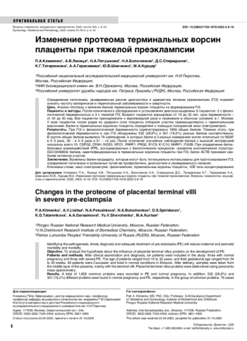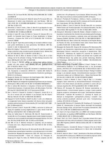37. Ziganshina MM, Muminova KT, Khasbiullina NR, Khodzhaeva ZS, Yarotskaya EL, Sukhikh GT. Characterization of Vascular Patterns Associated with Endothelial Glycocalyx Damage in Early- and Late-Onset Pre-eclampsia. Biomedicines. 2022 Nov 2;10(11):2790. DOI: 10.3390/biomedicines10112790