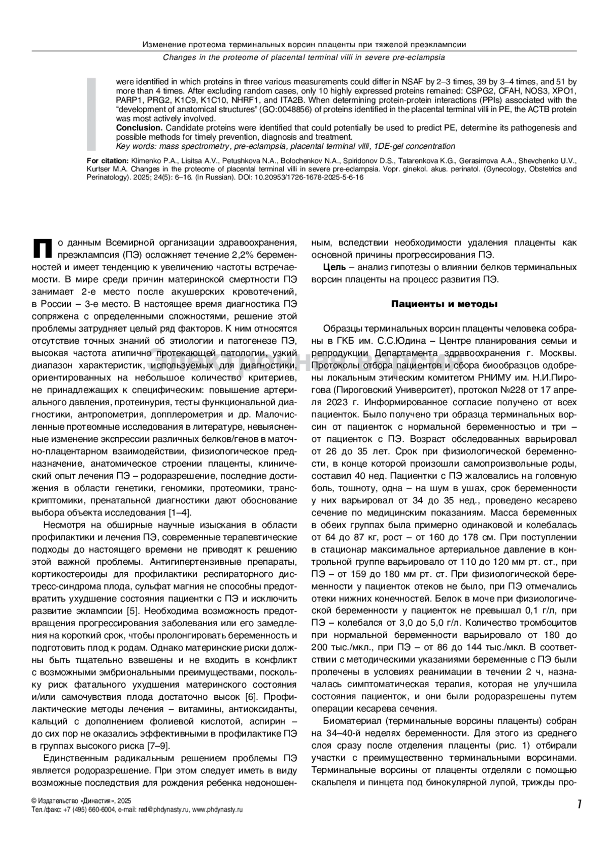 10. Shkrigunov T, Pogodin P, Zgoda V, Larina O, Kisrieva Y, Klimenko M, et al. Protocol for Increasing the Sensitivity of MS-Based Protein Detection in Human Chorionic Villi. Curr Issues Mol Biol. 2022 May 9;44(5):2069-2088. 10.3390/ cimb44050140. DOI: 10.3390/cimb44050140
