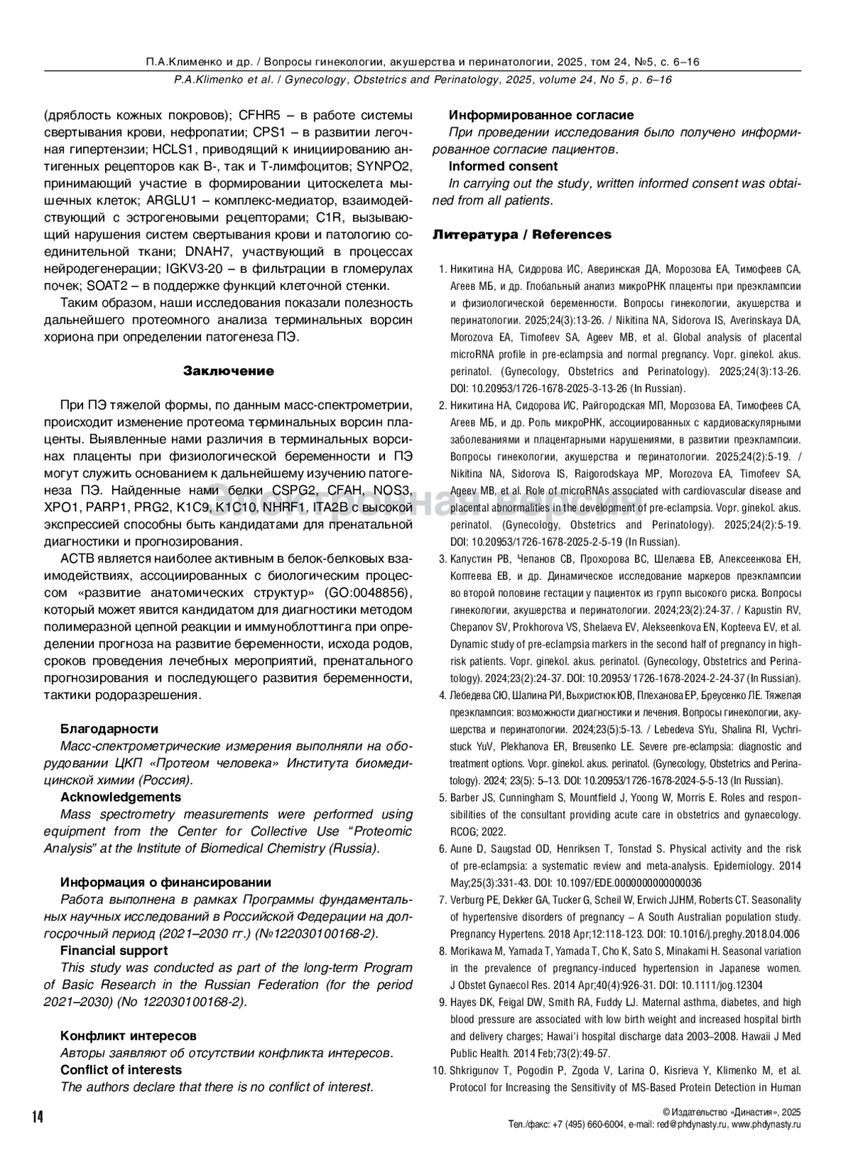 1. Никитина НА, Сидорова ИС, Аверинская ДА, Морозова ЕА, Тимофеев СА, Агеев МБ, и др. Глобальный анализ микроРНК плаценты при преэклампсии и физиологической беременности. Вопросы гинекологии, акушерства и перинатологии. 2025;24(3):13-26. DOI: 10.20953/1726-1678-2025-3-13-26