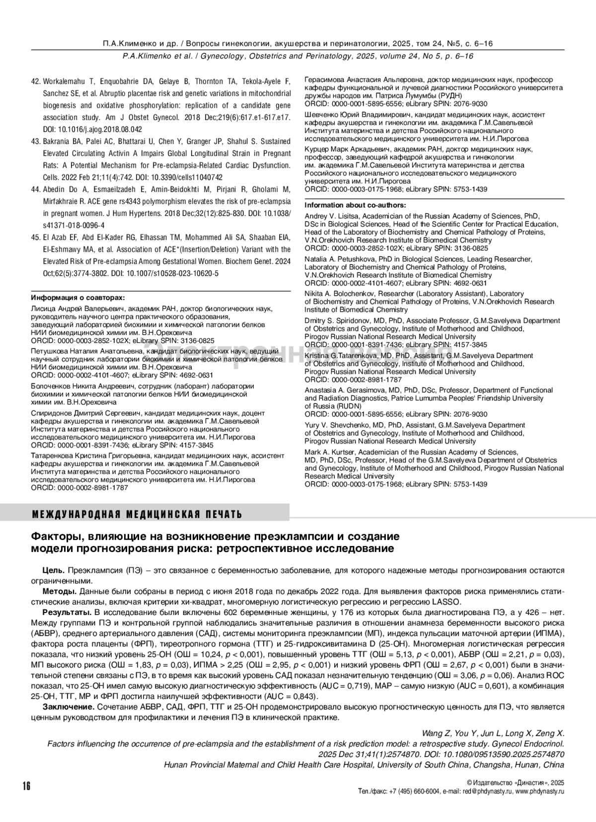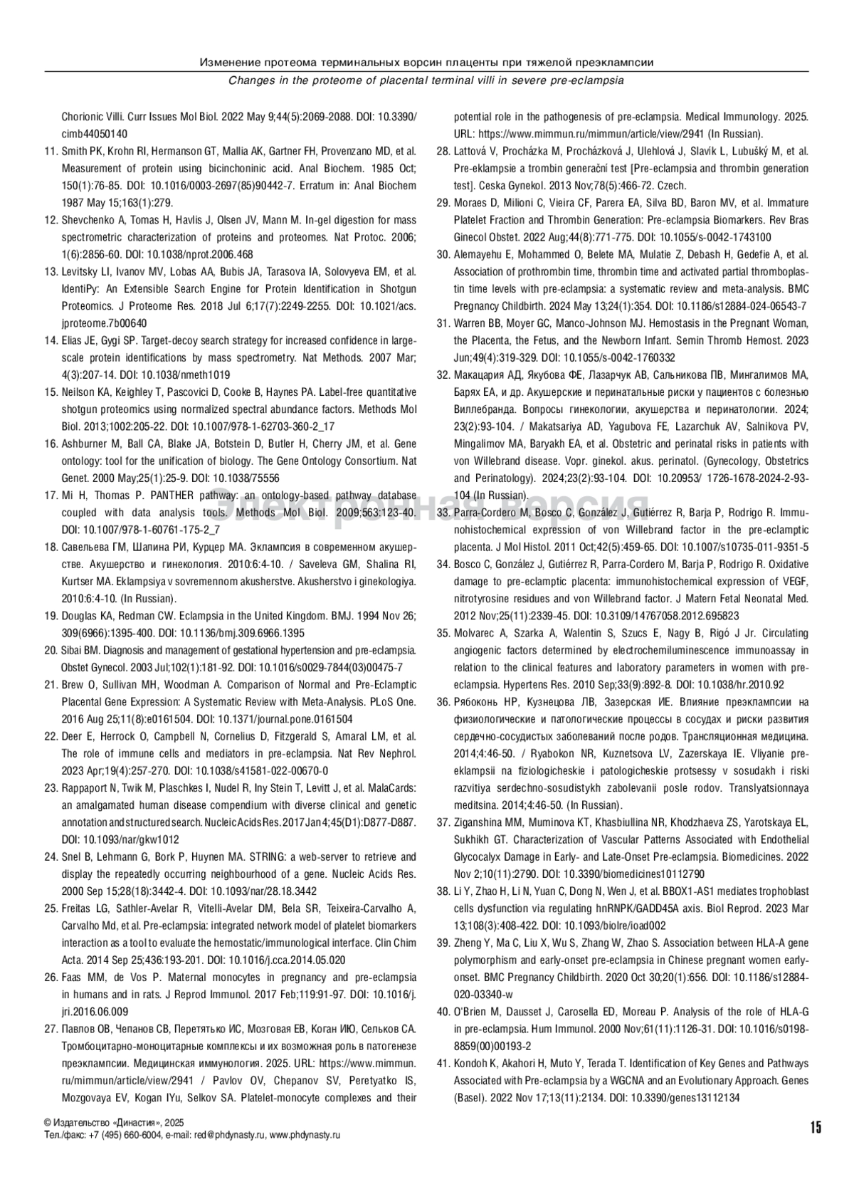 36. Рябоконь НР, Кузнецова ЛВ, Зазерская ИЕ. Влияние преэклампсии на физиологические и патологические процессы в сосудах и риски развития сердечно-сосудистых заболеваний после родов. Трансляционная медицина. 2014;4:46-50.