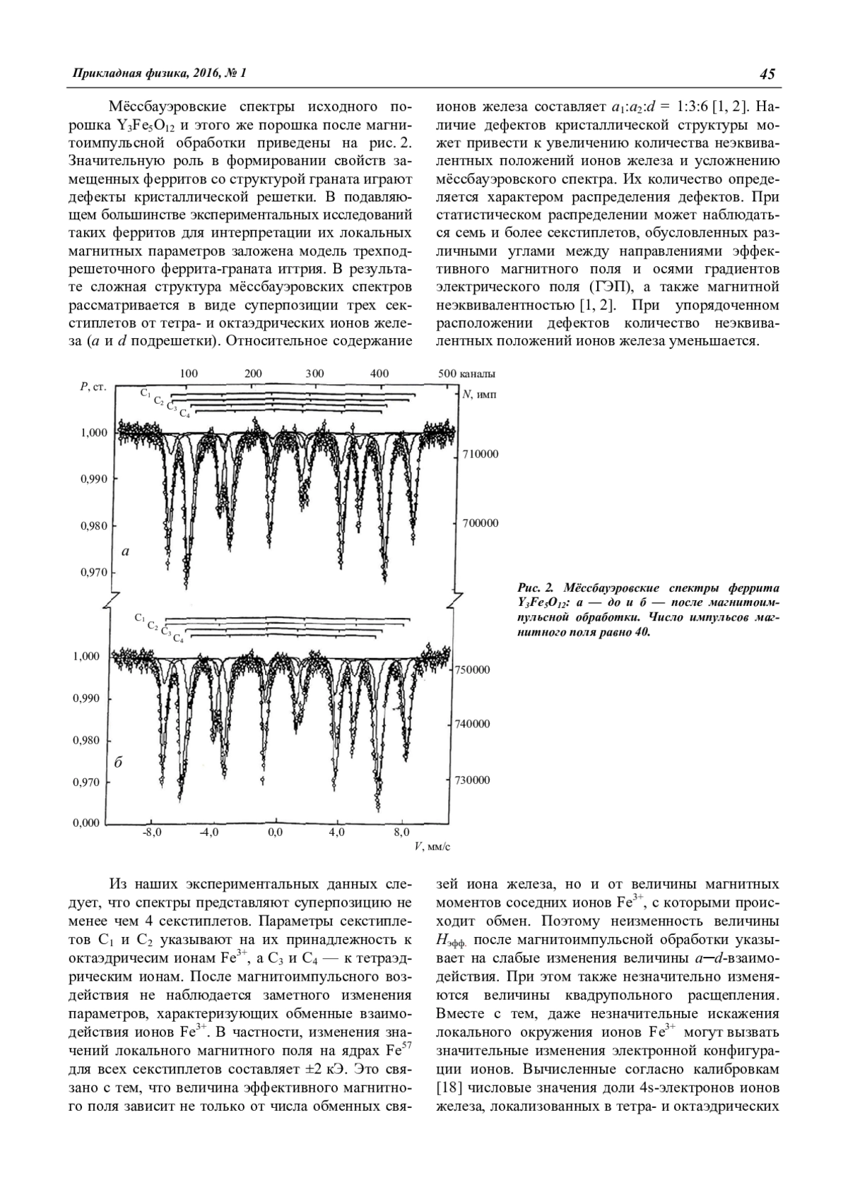Предполагается, что одной из причин изменения намагниченности насыщения Y3Fe5O12 после магнитоимпульсной обработки является изменение спинового состояния ионов железа, локализованных в тетраэдрической подрешетке.