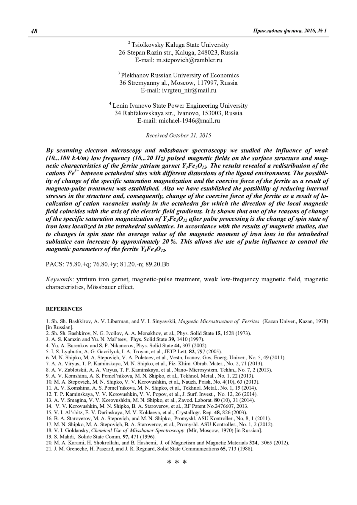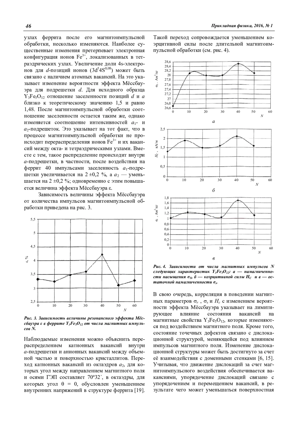 Коровушкин В. В., Костишин В. Г., Степович М. А., Шипко М. Н. Влияние магнитоимпульсной обработки на магнитные характеристики иттриевых ферритов-гранатов 43