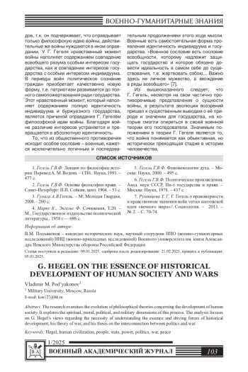 В статье рассматривается процесс эволюции философских теорий развития человеческого сообщества. Раскрываются его духовно-нравственные, политические и военные аспекты. Анализируется представления Г. Гегеля о необходимости изучения и познания сущности и движущих силах процесса исторического развития, гегелевская теория войны и его тезис о взаимосвязи политики и войны.
