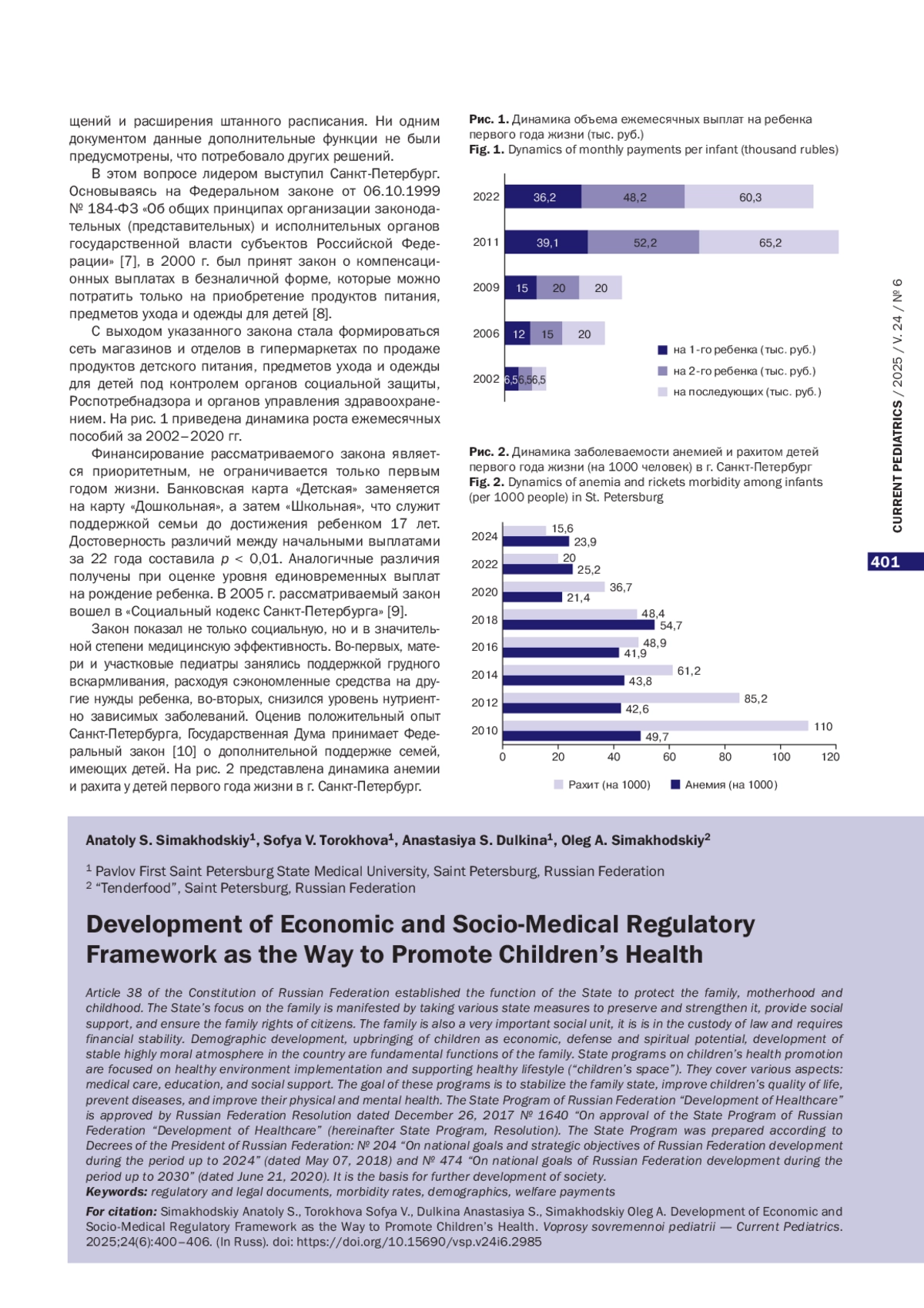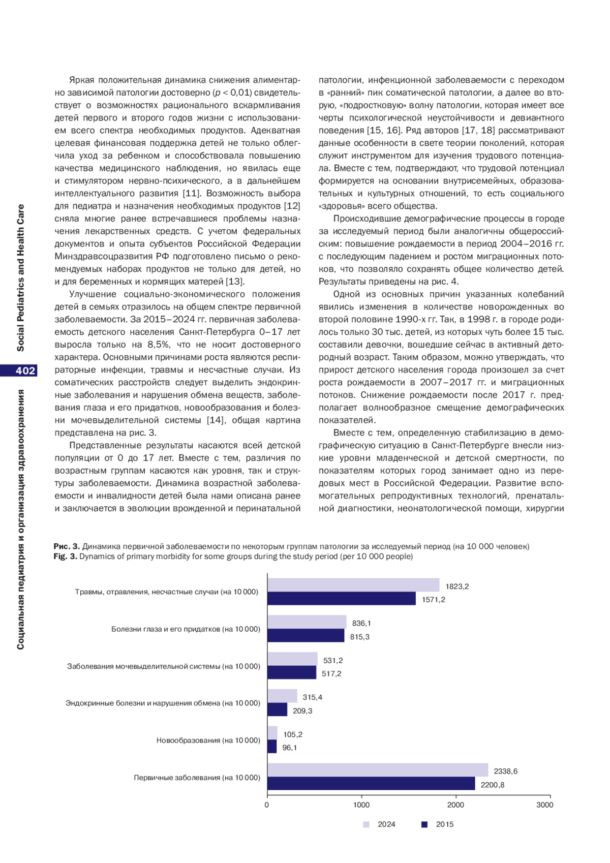 На основании анализа правовых актов федерального уровня и города Санкт-Петербурга, экономических и медико-статистических данных, предоставленных Управлением Федеральной службы государственной статистики по г. Санкт-Петербургу и Ленинградской области («Петростат»), основных итогов работы в сфере здравоохранения Санкт-Петербурга в 2023 г. и основных задач на 2024 г. [1] (с помощью методов вариационной статистики с определением достоверности методом Пирсона) определены тенденции в формировании здоровья детей.