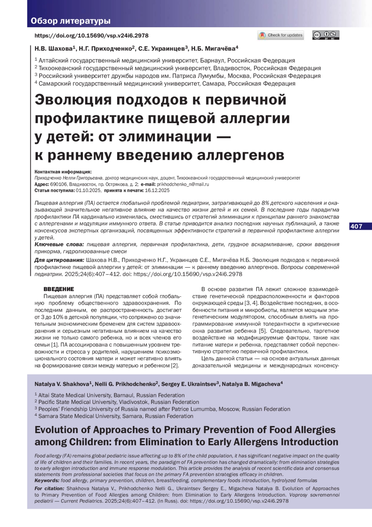 Пищевая аллергия (ПА) остается глобальной проблемой педиатрии, затрагивающей до 8% детского населения и оказывающей значительное негативное влияние на качество жизни детей и их семей. В последние годы парадигма профилактики ПА кардинально изменилась, сместившись от стратегий элиминации к принципам раннего знакомства с аллергенами и модуляции иммунного ответа. В статье приводится анализ последних научных публикаций, а также консенсусов экспертных организаций, посвященных эффективности стратегий в первичной профилактике аллергии у детей.
