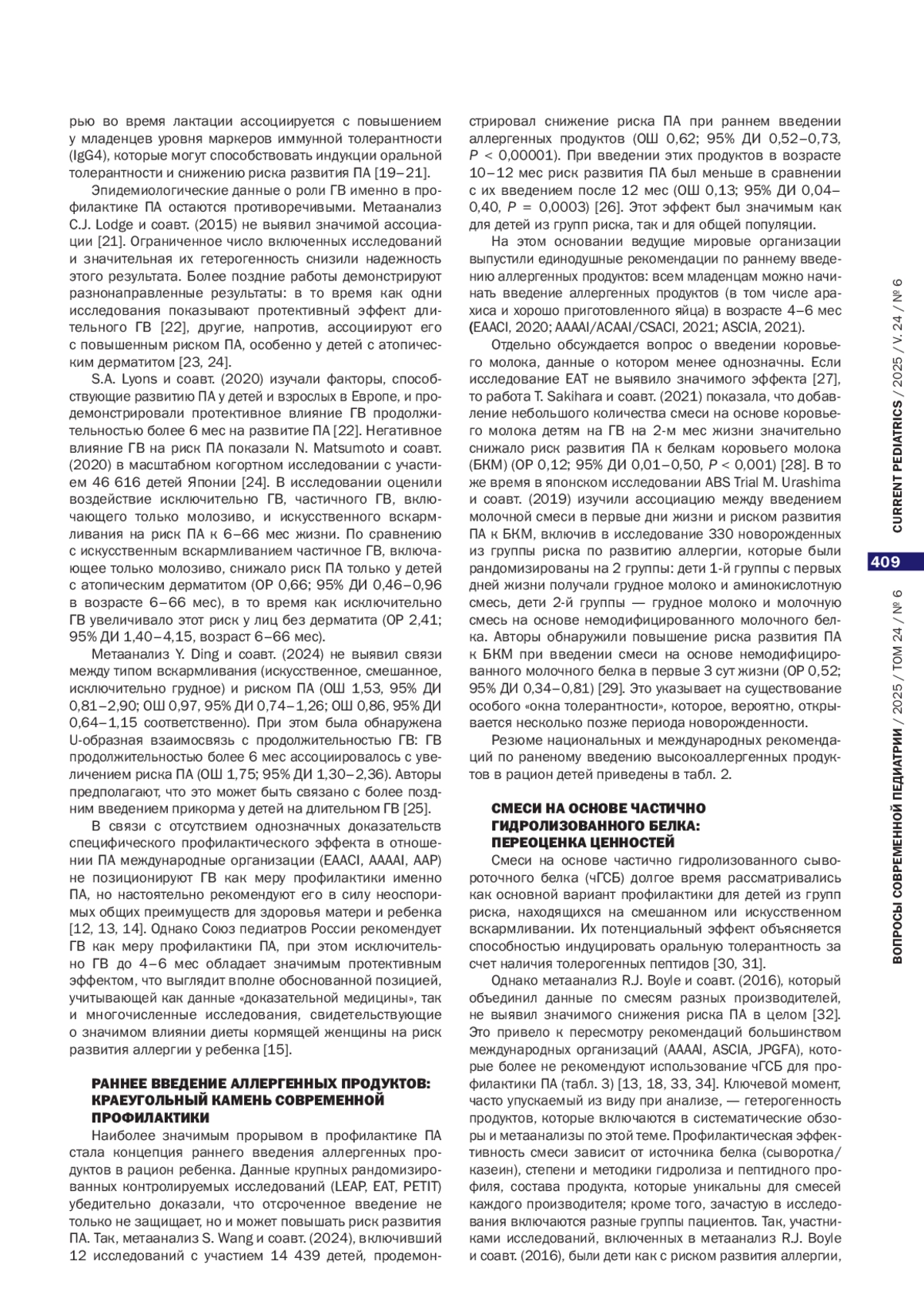 25. Ding Y, Zhu C, Li S, et al. Breastfeeding and risk of food allergy and allergic rhinitis in offspring: a systematic review and metaanalysis of cohort studies. Eur J Pediatr. 2024;183(8):3433-3443. doi: https://doi.org/10.1007/s00431-024-05580-w.