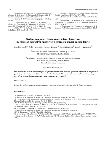 S. I. Valyanskii, S. V. Vinogradov, M. A. Kononov, V. M. Kononov, and S. F. Rastopov Surface copper-carbon microstructures formation by means of magnetron sputtering a composite copper-carbon target 49