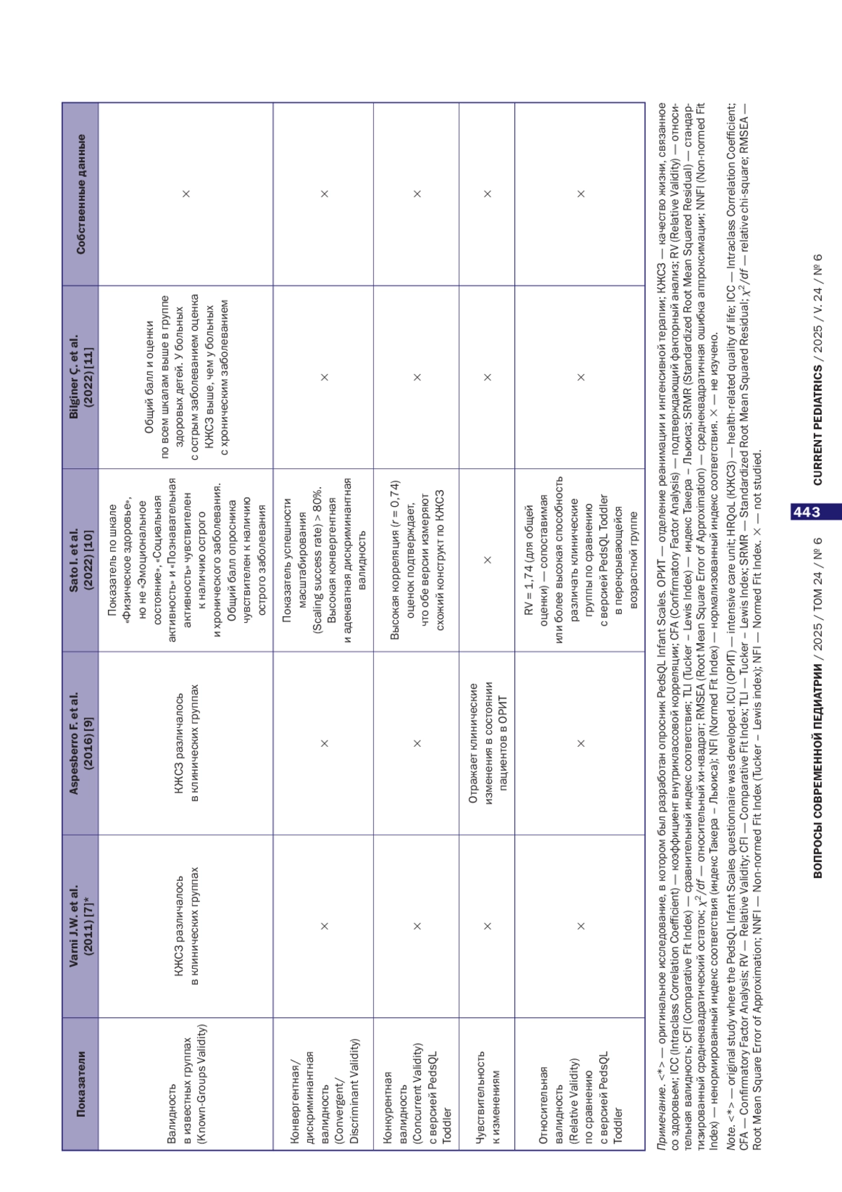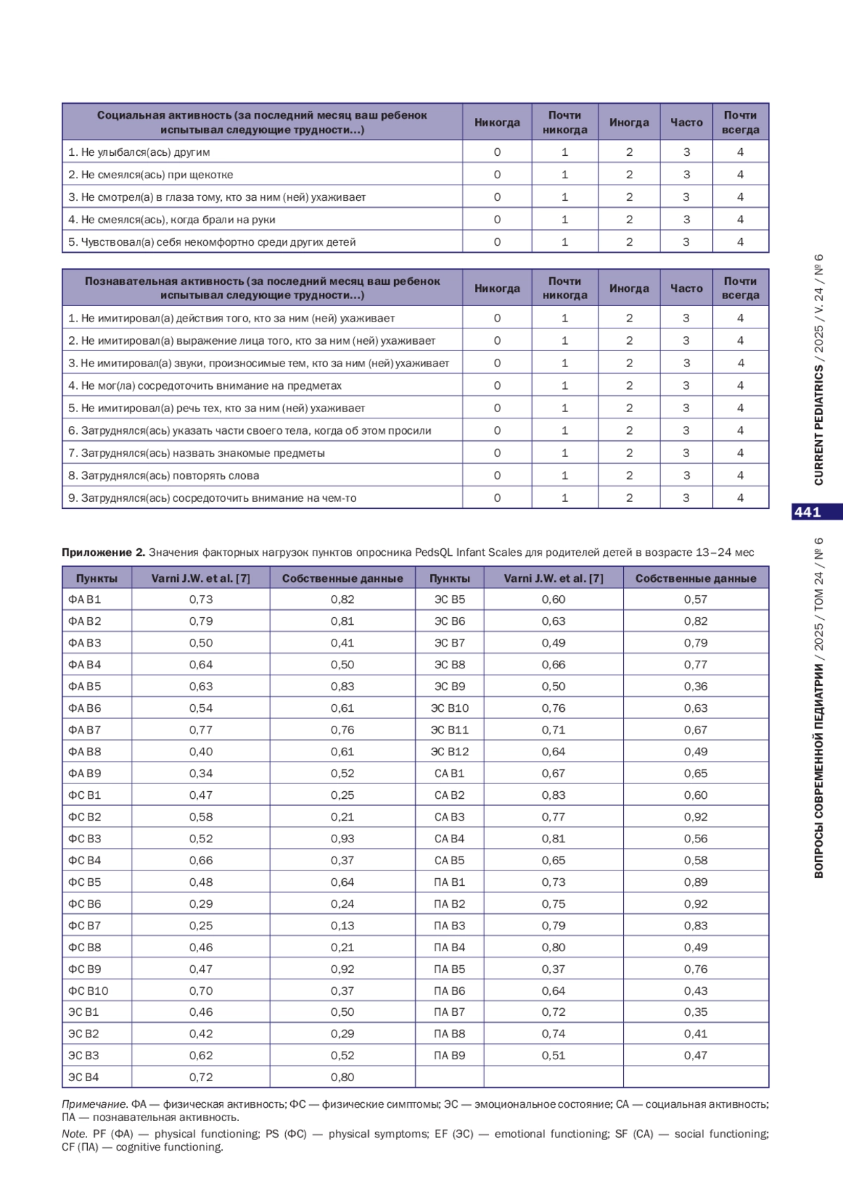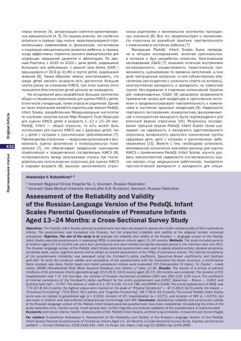 Статья: Оценка надежности и валидности русскоязычной версии опросника PedsQL Infant Scales для родителей недоношенных детей в возрасте 13–24 месяцев: одномоментное опросное исследование (2025)