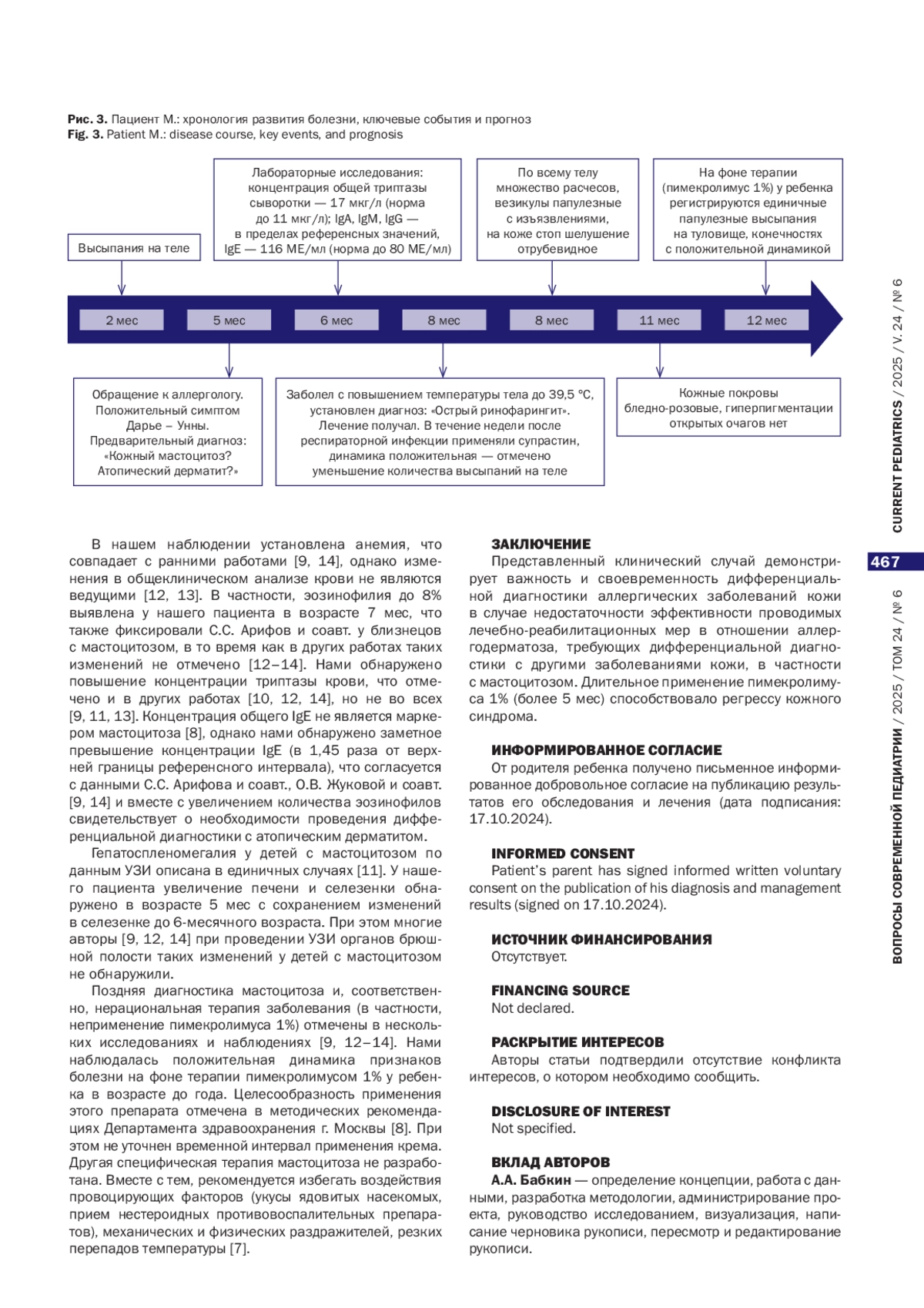 13. Валиев Т.Т., Мурашкин Н.Н., Белышева Т.С. и др. Терапевтические подходы при диффузном кожном мастоцитозе у детей: обзор литературы и собственный клинический опыт // Вопросы современной педиатрии. - 2024. - Т. 23. - № 5. - С. 384-390. - doi: https://doi.org/10.15690/vsp.v23i5.2794.