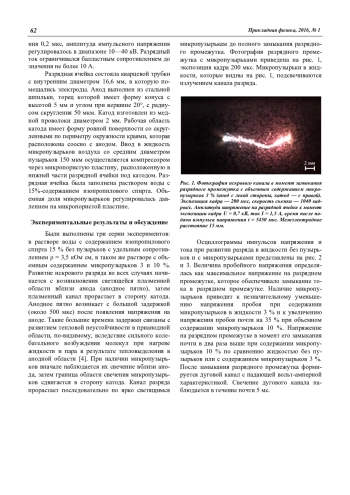 Панов В. А., Василяк Л. М., Ветчинин С. П., Печеркин В. Я., Сон Э. Е. Распространение искрового канала в жидкости с микропузырьками 61 Левченко В. А., Старшинов П. В., Свитнев С. А., Попов О. А., Костюченко С. В. Влияние давления инертного газа на генерацию УФ-излучения лампы трансформаторного типа с разрядной трубкой малого диаметра 66