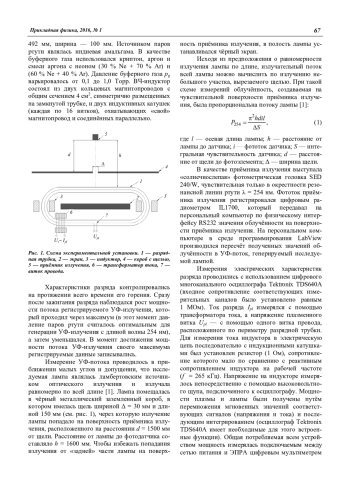 Панов В. А., Василяк Л. М., Ветчинин С. П., Печеркин В. Я., Сон Э. Е. Распространение искрового канала в жидкости с микропузырьками 61 Левченко В. А., Старшинов П. В., Свитнев С. А., Попов О. А., Костюченко С. В. Влияние давления инертного газа на генерацию УФ-излучения лампы трансформаторного типа с разрядной трубкой малого диаметра 66