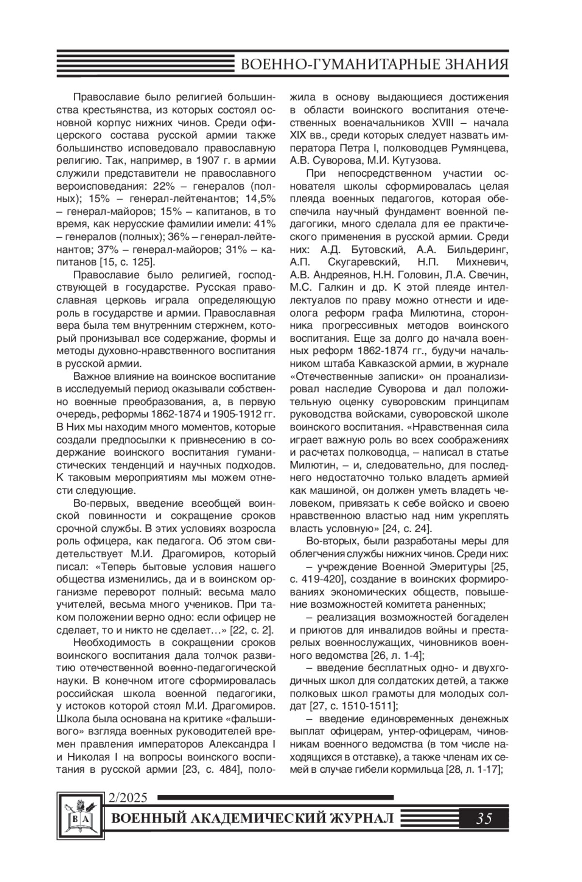 24. Милютин Д.А. Суворов // Отечественные записки. - 1839. - №4. Разд. 2. - С. 1-71.