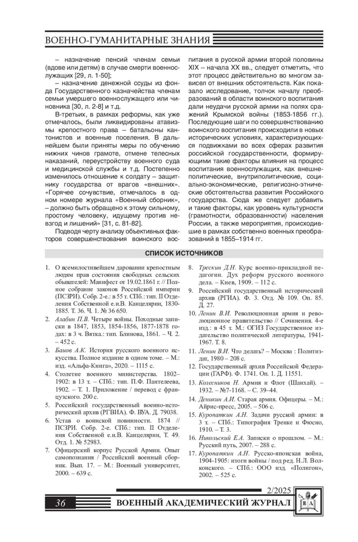 8. Трескин Д.Н. Курс военно-прикладной педагогии. Дух реформ русского военного дела. - Киев, 1909. - 112 с.
