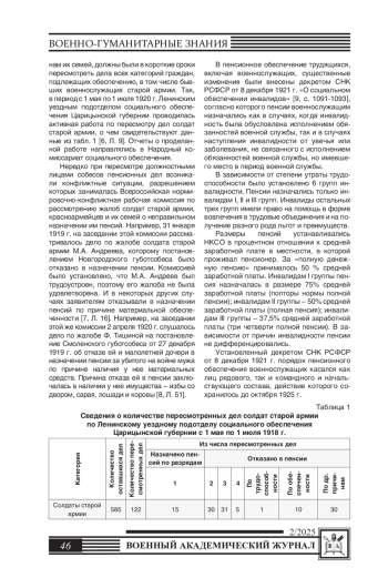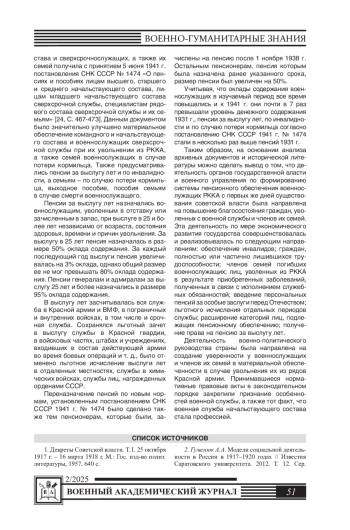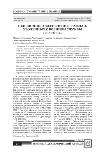 В статье раскрывается деятельность советского государства по формированию системы пенсионного обеспечения граждан, уволенных с военной службы в период 1918-1941 гг. Анализ нормативных правовых документов, архивных источников, научно-исследовательской литературы, публикаций и выступлений государственных, военных и партийных руководителей страны позволил раскрыть генезис рассматриваемой проблемы. В статье раскрыты основные направления работы должностных лиц органов государственной власти и военного управления по совершенствованию пенсионного обеспечения военных отставников.