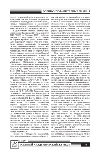 В деятельности советского правительства важное место занимали вопросы пенсионного обеспечения военнослужащих и членов их семей, одним из которых являлось попечение инвалидов войны и их семей. Государство не оставило также без внимания инвалидов войны и военной службы армии дореволюционной России.
