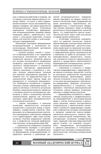 19. Белошицкий А.В., Фурсов Д.Н. Культурологический подход в формировании интернационализма иностранных военнослужащих // Развитие субъектов образовательного процесса в современных условиях. - 2020. - С. 301-304. EDN: AQEPYH