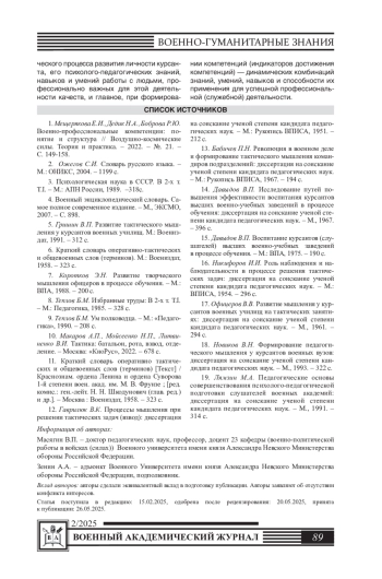 17. Новиков В.Н. Формирование педагогического мышления у курсантов военных вузов: диссертация на соискание ученой степени кандидата педагогических наук. - М., 1993. - 322 с. EDN: NPKZIN