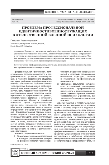 Профессиональная идентичность является важным аспектом личностного и профессионального развития военнослужащих.