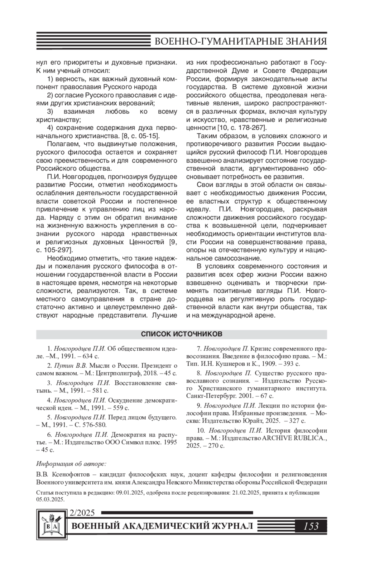 8. Новгородцев П. И. Существо русского православного сознания. - Издательство Русского Христианского гуманитарного института. Санкт-Петербург. 2001. - 67 с.