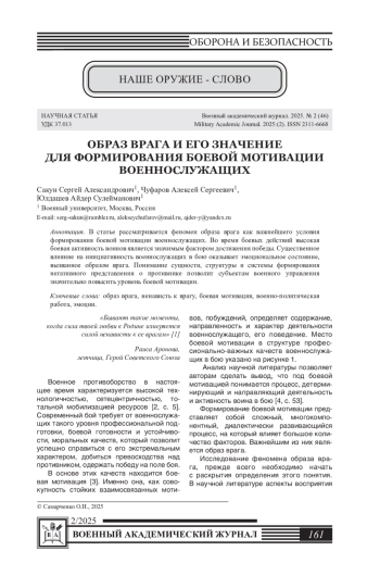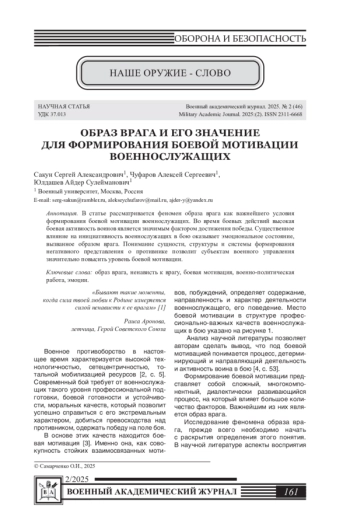 В статье рассматривается феномен образа врага как важнейшего условия формирования боевой мотивации военнослужащих. Во время боевых действий высокая боевая активность воинов является значимым фактором достижения победы. Существенное влияние на инициативность военнослужащих в бою оказывает эмоциональное состояние, вызванное образом врага. Понимание сущности, структуры и системы формирования негативного представления о противнике позволит субъектам военного управления значительно повысить уровень боевой мотивации.