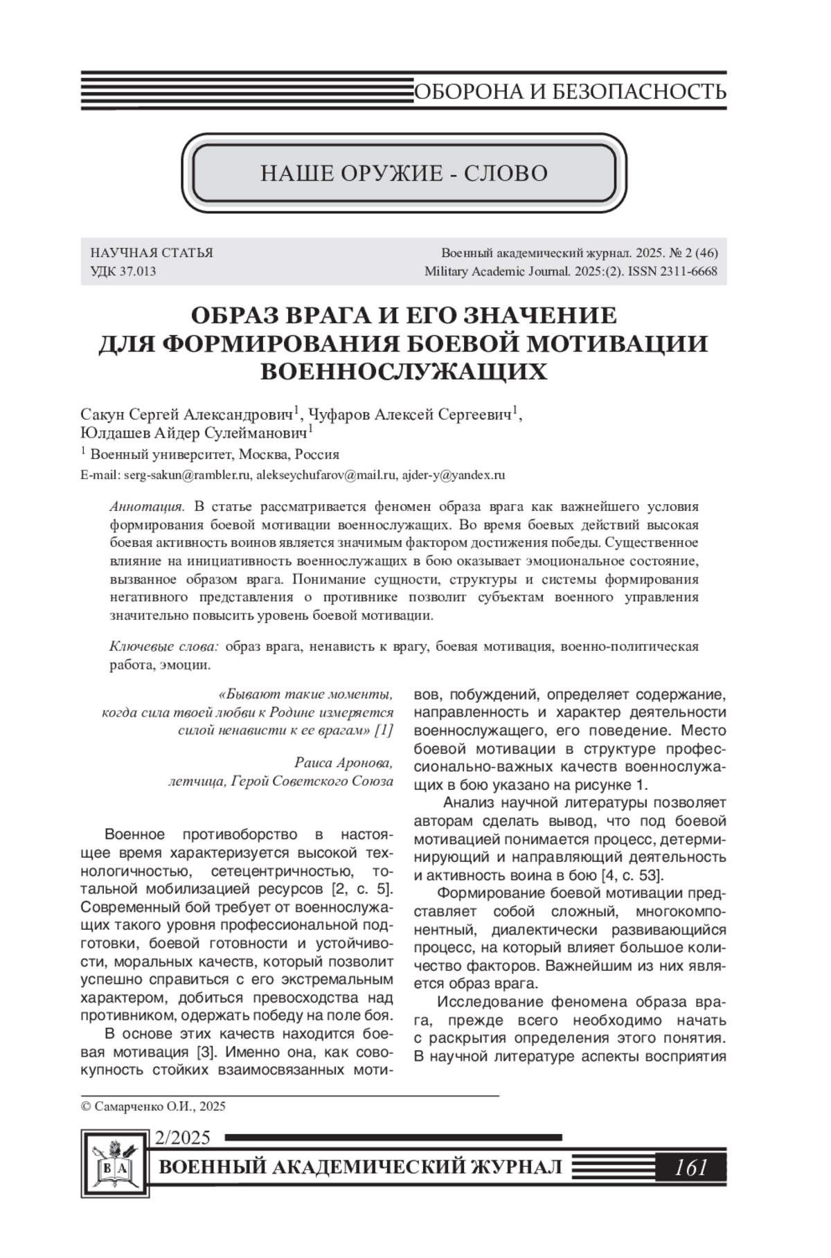 10. Киселева Т.В., Улизко П.В. Эволюция образа врага в советской пропаганде в годы Вели- кой Отечественной войны // Военный академический журнал. 2021. № 1 (29). - С.110-118. EDN: MNIPWX