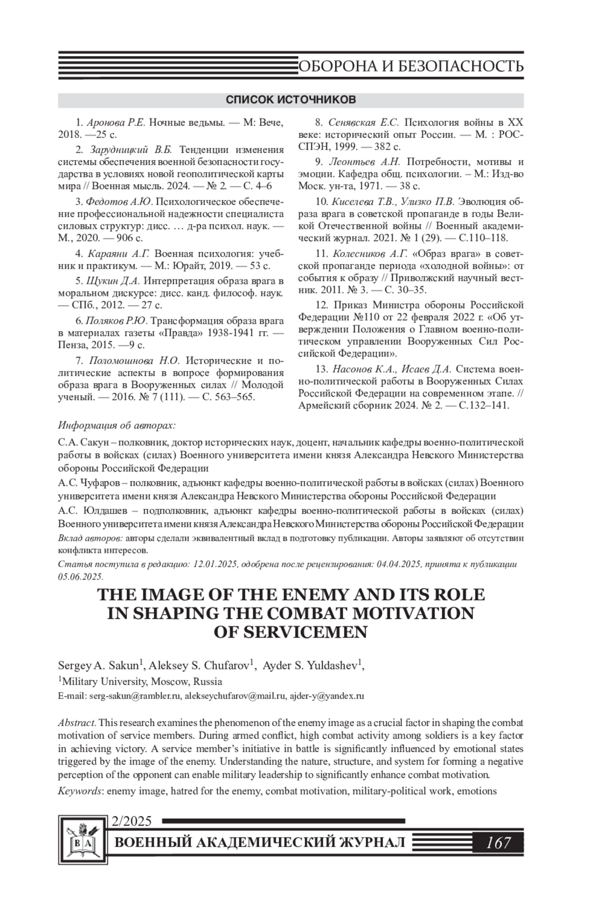 13. Насонов К.А., Исаев Д.А. Система военно-политической работы в Вооруженных Силах Российской Федерации на современном этапе. // Армейский сборник 2024. № 2. - С.132-141.