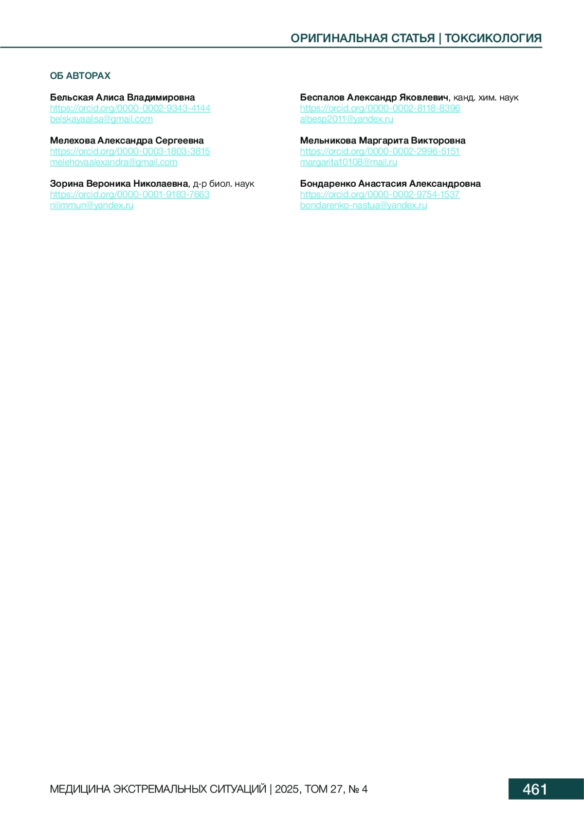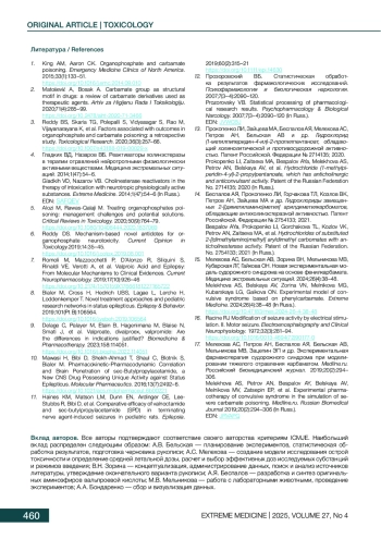 17. Мелехова АС, Петров АН, Беспалов АЯ, Бельская АВ, Мельникова МВ, Зацепин ЭП и др. Экспериментальная фармакотерапия судорожного синдрома при моделировании тяжелого отравления карбаматом. Medline.ru. Российский биомедицинский журнал. 2019;20(2):294-306.