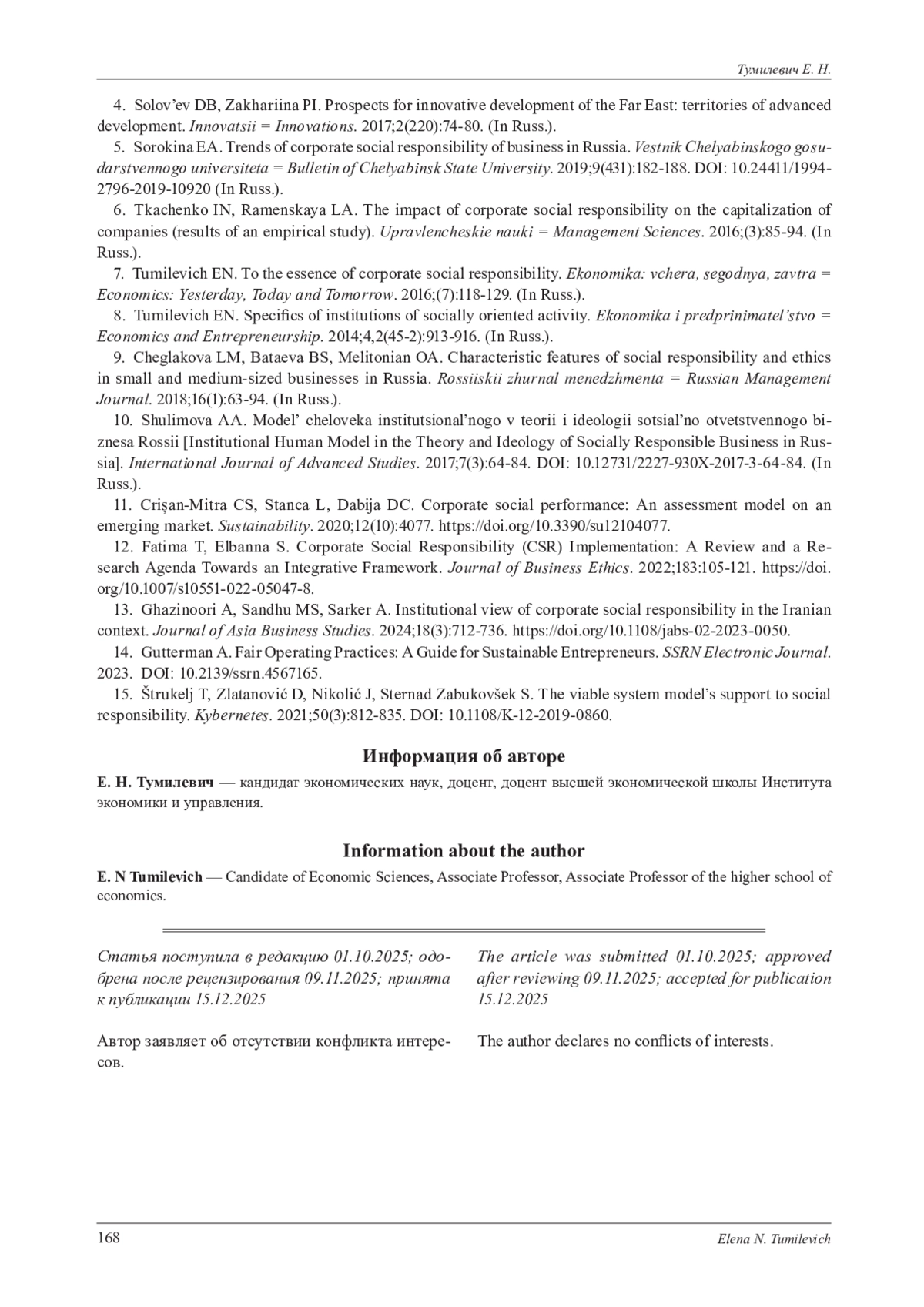 7. Тумилевич Е. Н. К сущности корпоративной социальной ответственности // Экономика: вчера, сегодня, завтра. 2016. № 7. С. 118-129. EDN: WXMKXJ