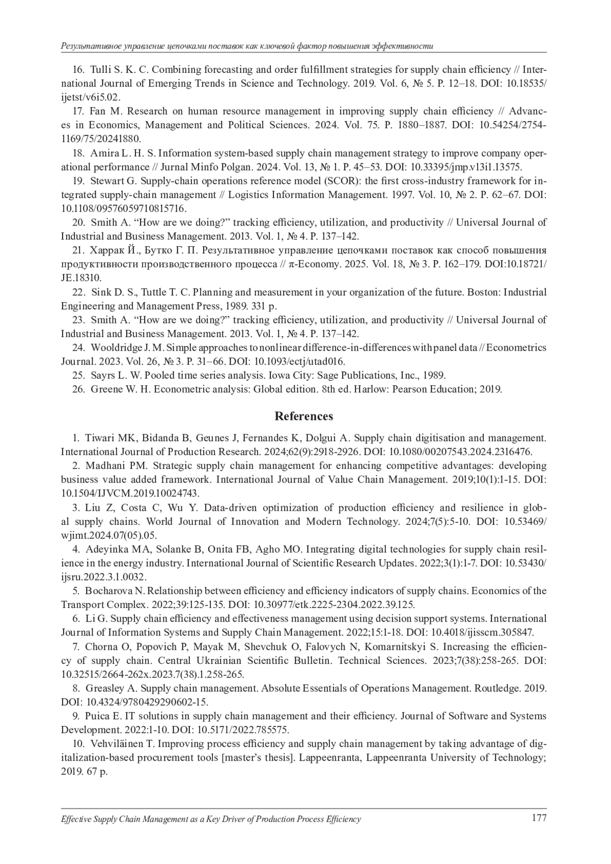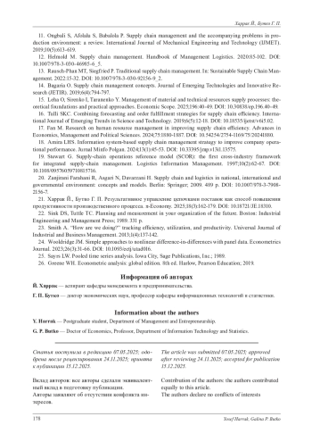 21. Харрак Й., Бутко Г. П. Результативное управление цепочками поставок как способ повышения продуктивности производственного процесса // п-Economy. 2025. Vol. 18, № 3. P. 162-179. 10.18721/ JE.18310. DOI: 10.18721/JE.18310 EDN: BILBMQ