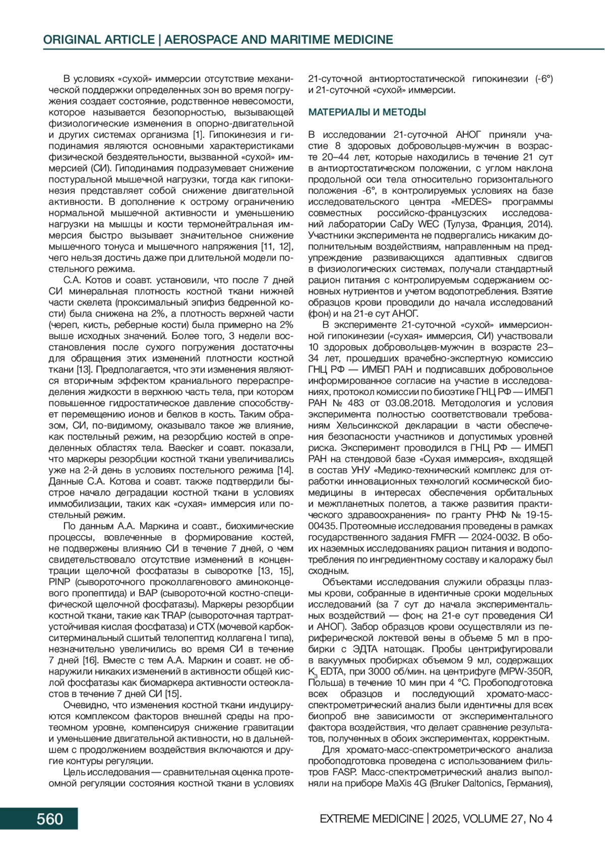 25. Пастушкова ЛХ, Гончарова АГ, Каширина ДН, Поляков АВ, Ларина ИМ. Определение протеомных маркеров, включенных в молекулярные сети нарушений в костной системе во время продолжительных космических полетов. Технологии Живых Систем. 2025;22(1):5-21.