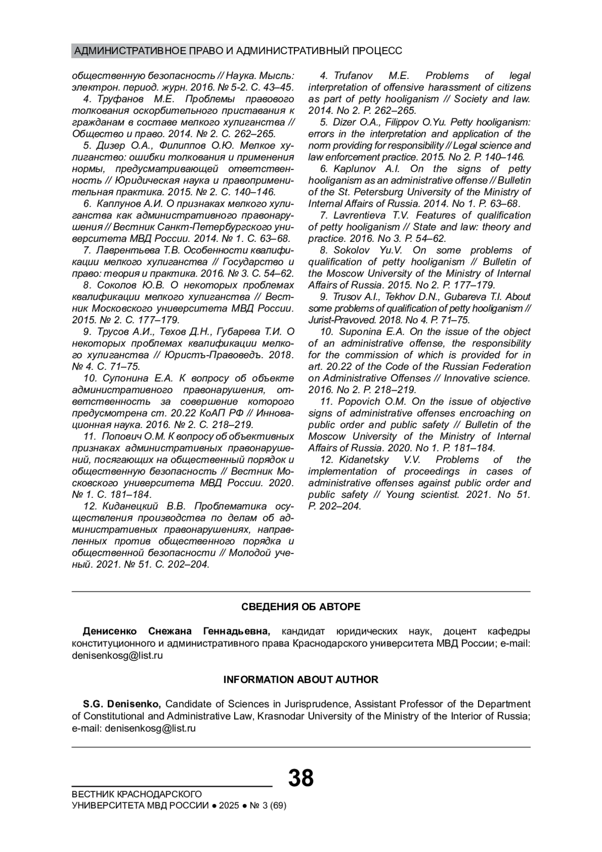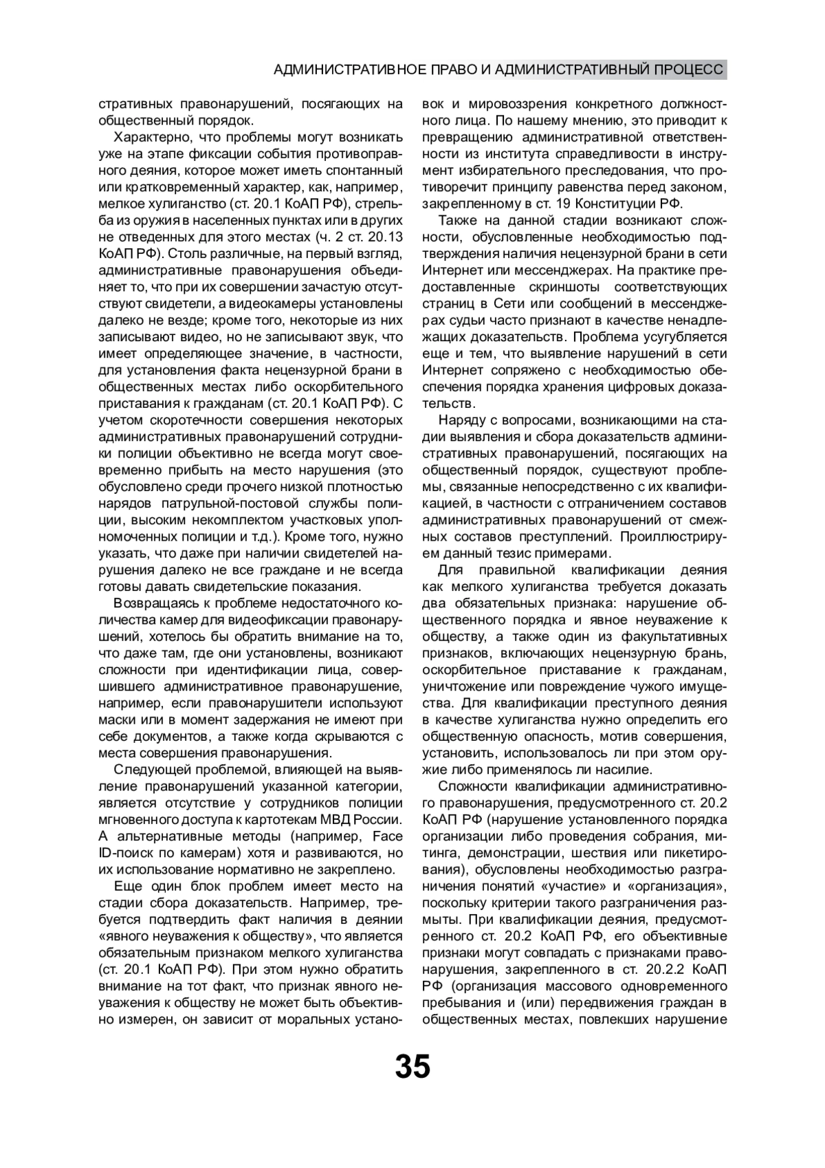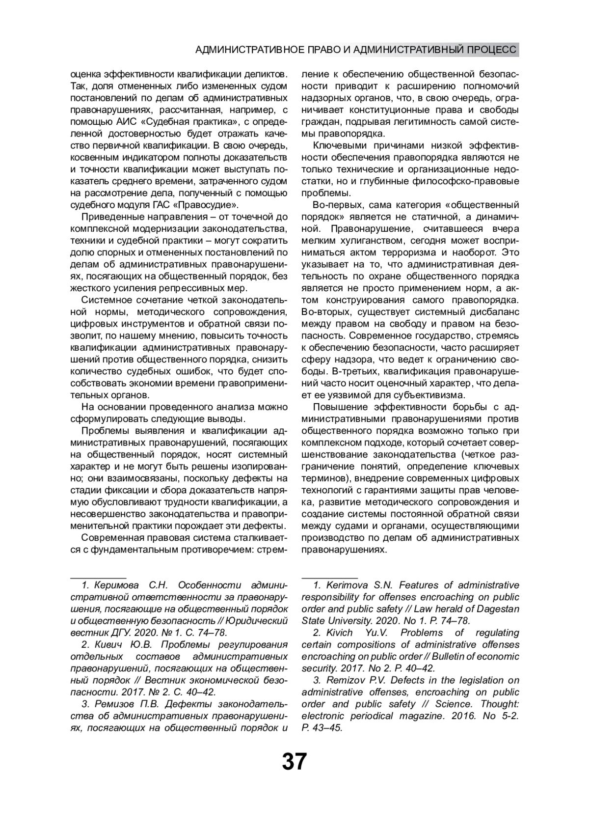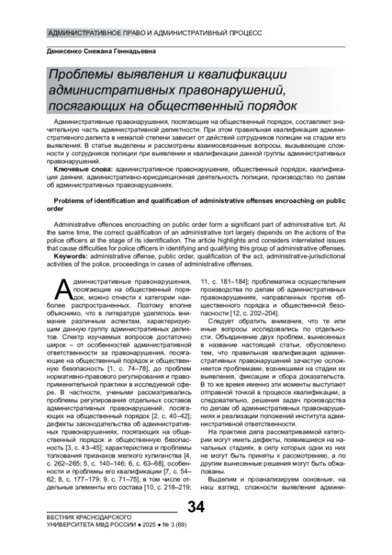 2. Кивич Ю.В. Проблемы регулирования отдельных составов административных правонарушений, посягающих на общественный порядок // Вестник экономической безопасности. 2017. № 2. С. 40-42.