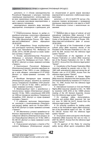 8. Об обеспечении условий проведения публичных мероприятий на территории Новосибирской области [Электронный ресурс]: закон Новосибирской области от 10 дек. 2004 г. № 238-ОЗ. Доступ из справ.-правовой системы “Гарант”.