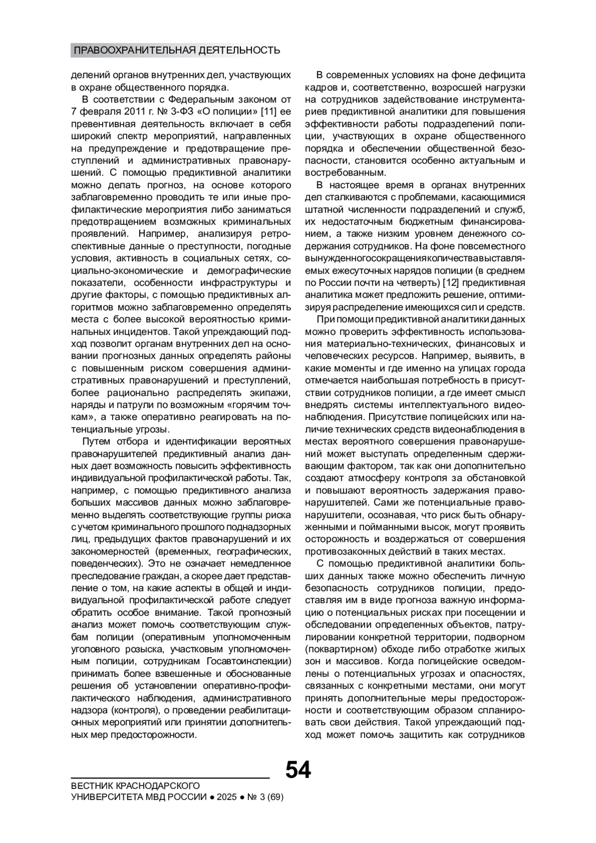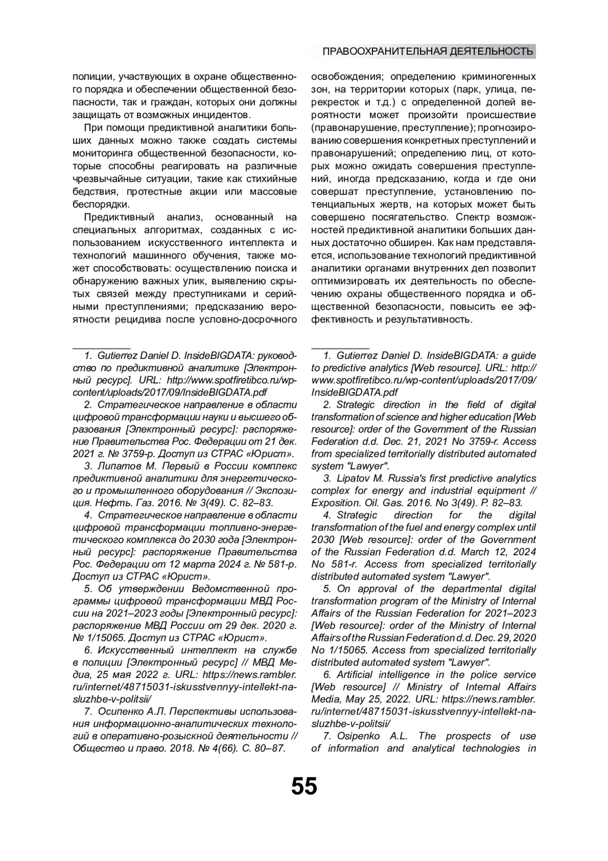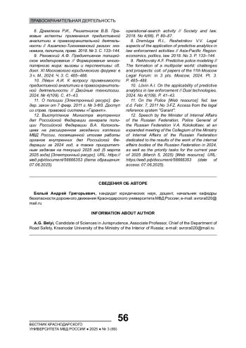 8. Дремлюга Р.И., Решетников В.В. Правовые аспекты применения предиктивной аналитики в правоохранительной деятельности // Азиатско-Тихоокеанский регион: экономика, политика, право. 2018. № 3. С. 133-144. EDN: WOKVQQ