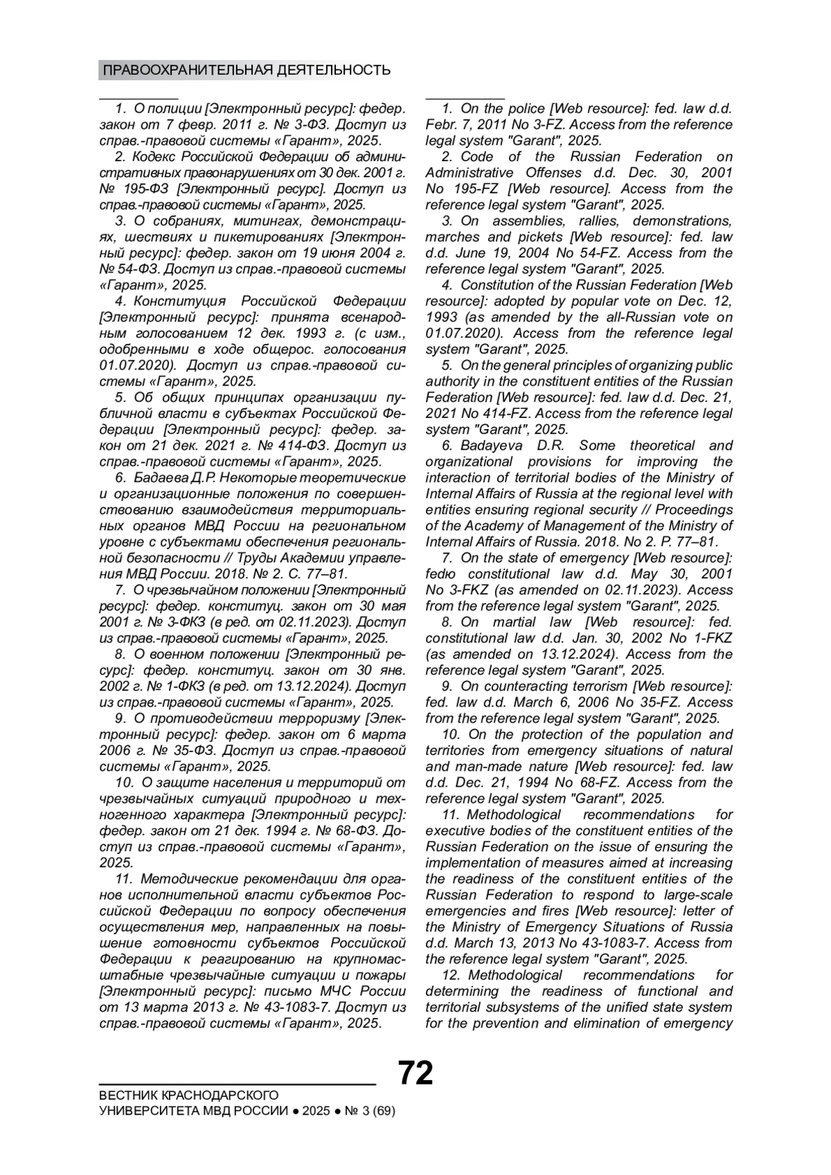 1. О полиции [Электронный ресурс]: федер. закон от 7 февр. 2011 г. № 3-ФЗ. Доступ из справ.-правовой системы “Гарант”, 2025.