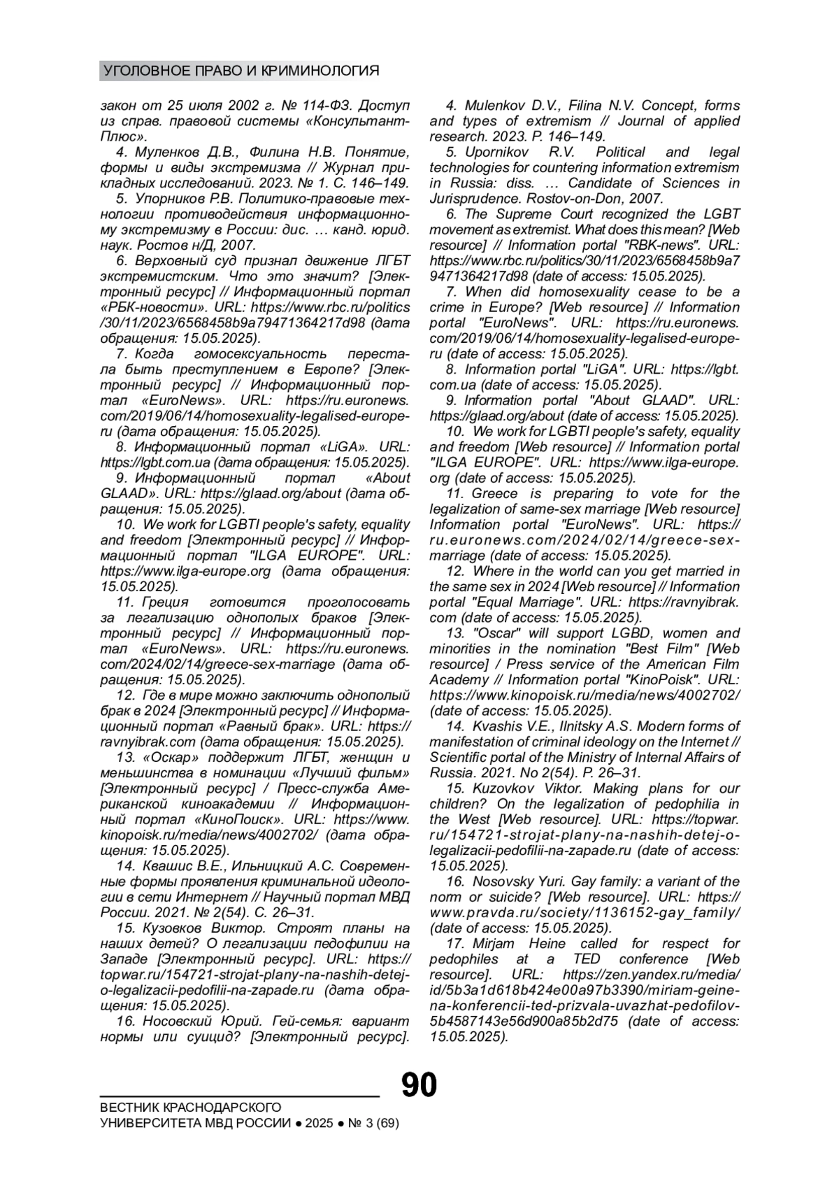 4. Муленков Д.В., Филина Н.В. Понятие, формы и виды экстремизма // Журнал прикладных исследований. 2023. № 1. С. 146-149. EDN: VTCBTT
